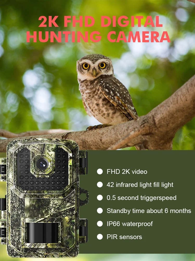 2023 New Outdoor Security 2K FHD PIR Night Vision Hunting Cameras WitAh 42 Lights IP66 Waterproof Wildlife Trail Cam