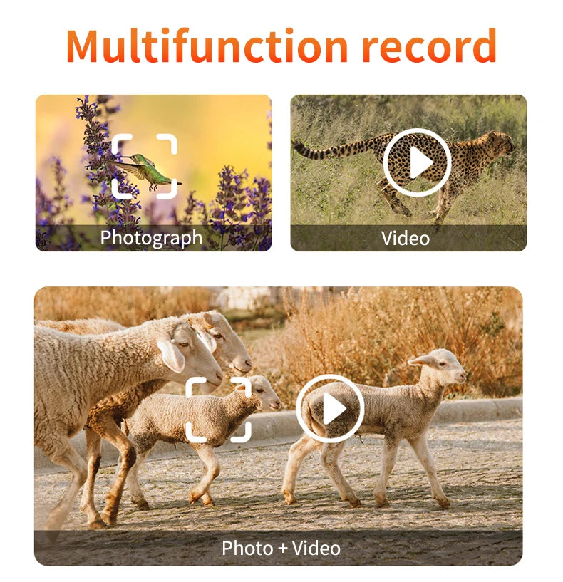 1.Sleep and wake up quickly intelligent power saving technology. 2.Smart PIR detection alarm record. 3.Using high-performance 1/2 "black light full-color image processor. 4.Built-in battery with solar charging. 5.Recording 24/7