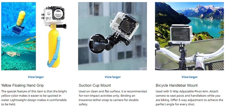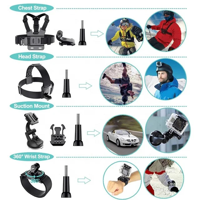 6.Compatible with: GoPro Hero Series Sj4000 Sj4000 plus Sj5000 Sj6000 Amkov XiaoMi Yi AMK 5000 AMK 5000S Dazzne P2 Dazzne P3 EKEN H9 FIREFLY 5S FIREFLY 6S Polaroid Cube SJ7000 SJCAM 4000 plus SJCAM 5000 plus SJCAM M10 SJCAM M10 Plus Soocoo C10 Soocoo S60 and all other action cameras