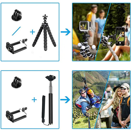 - The accessories kit is made with high quality materials. The kit can hold the action camera safely.