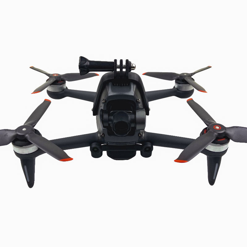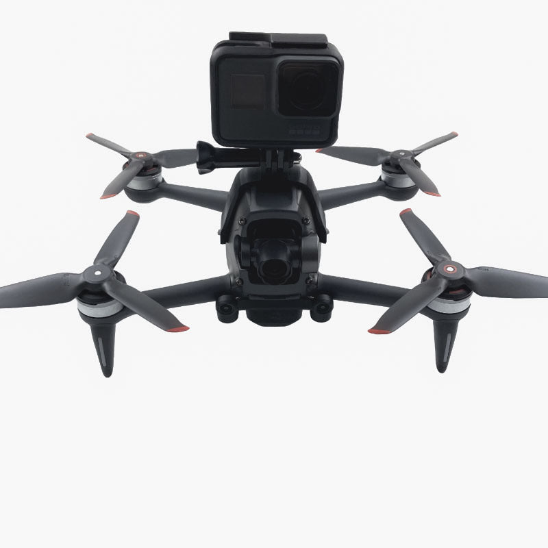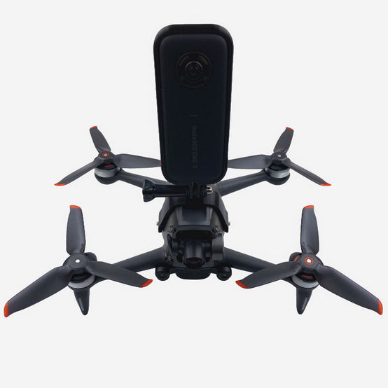 This bracket is made of 3D printing, hard plastic material, and a soft sponge is attached to the contact part with the fuselage. After use, it can support products that can be connected to GoPro connectors, such as cameras, etc., to expand the gameplay