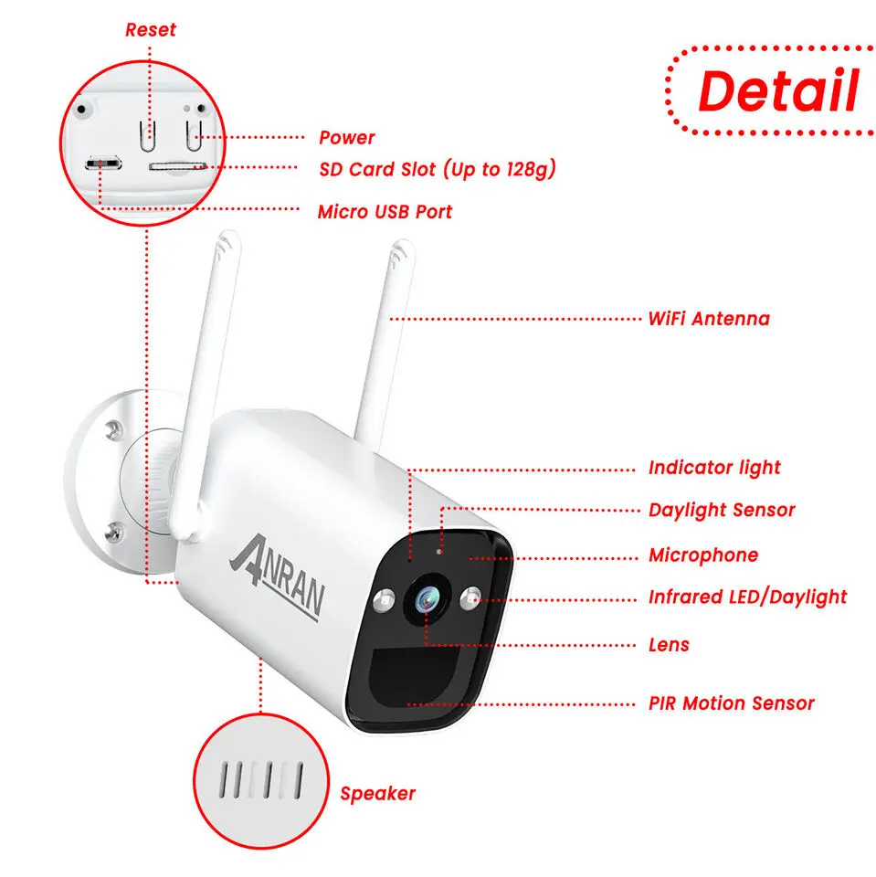 ANRAN 1080P 3MP Solar Panel Wireless rechargeable Battery Camera WIFI Outdoor PIR CCTV Surveillance Security Battery IP Camera