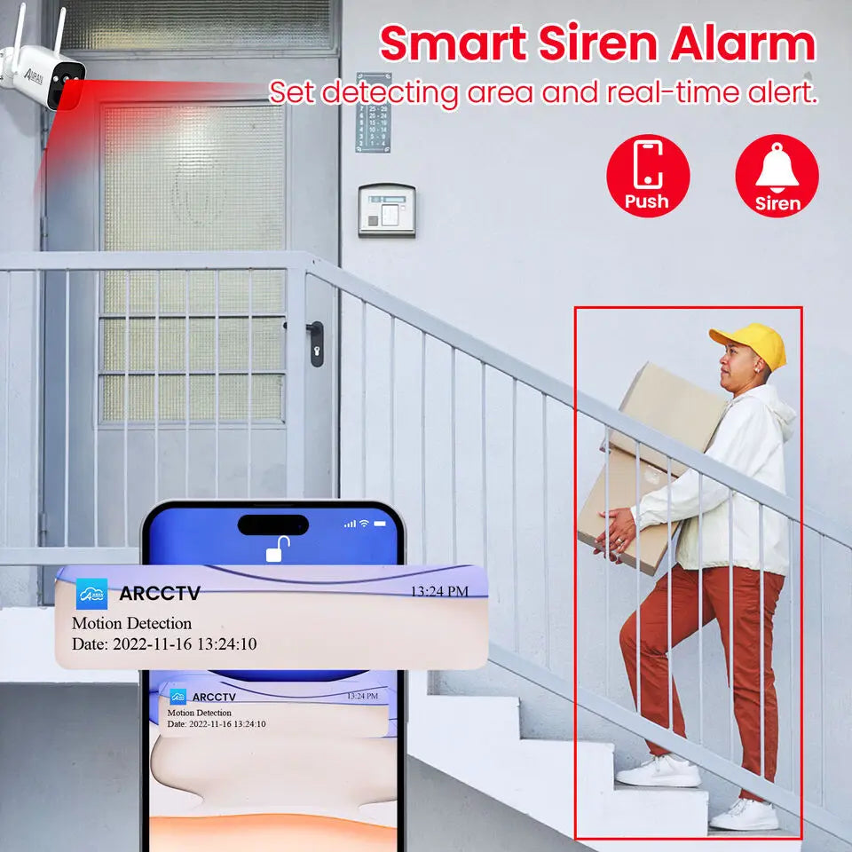 Support ios, Android,Windows PC. With the free app ARCCTV. you'll know that's happening even when you're not around, Receive notifications and view live or recorded footage right from your phone.