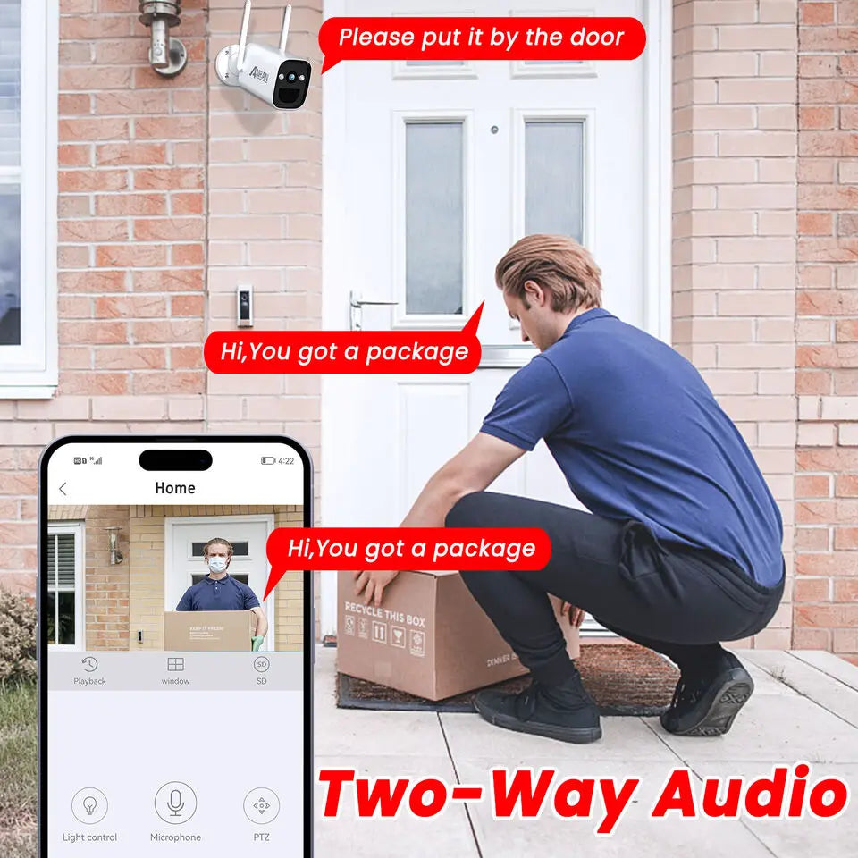 Get the most out of your security camera with 2-way audio. The built-in microphone and speaker allows you to use your smartphone to communicate to anyone at the other end of the camera.