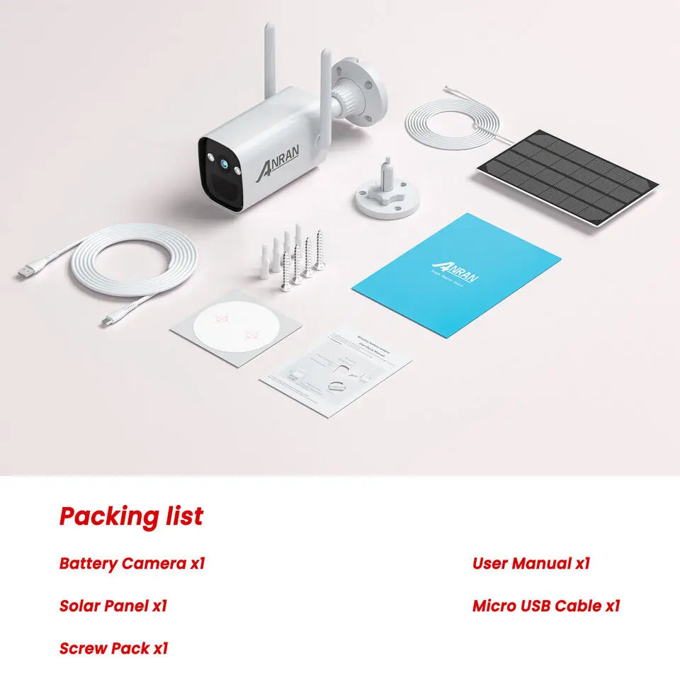 ANRAN 2K 3MP Solar Panel Wireless Battery Camera WIFI Outdoor PIR Detection CCTV Surveillance Security Camera