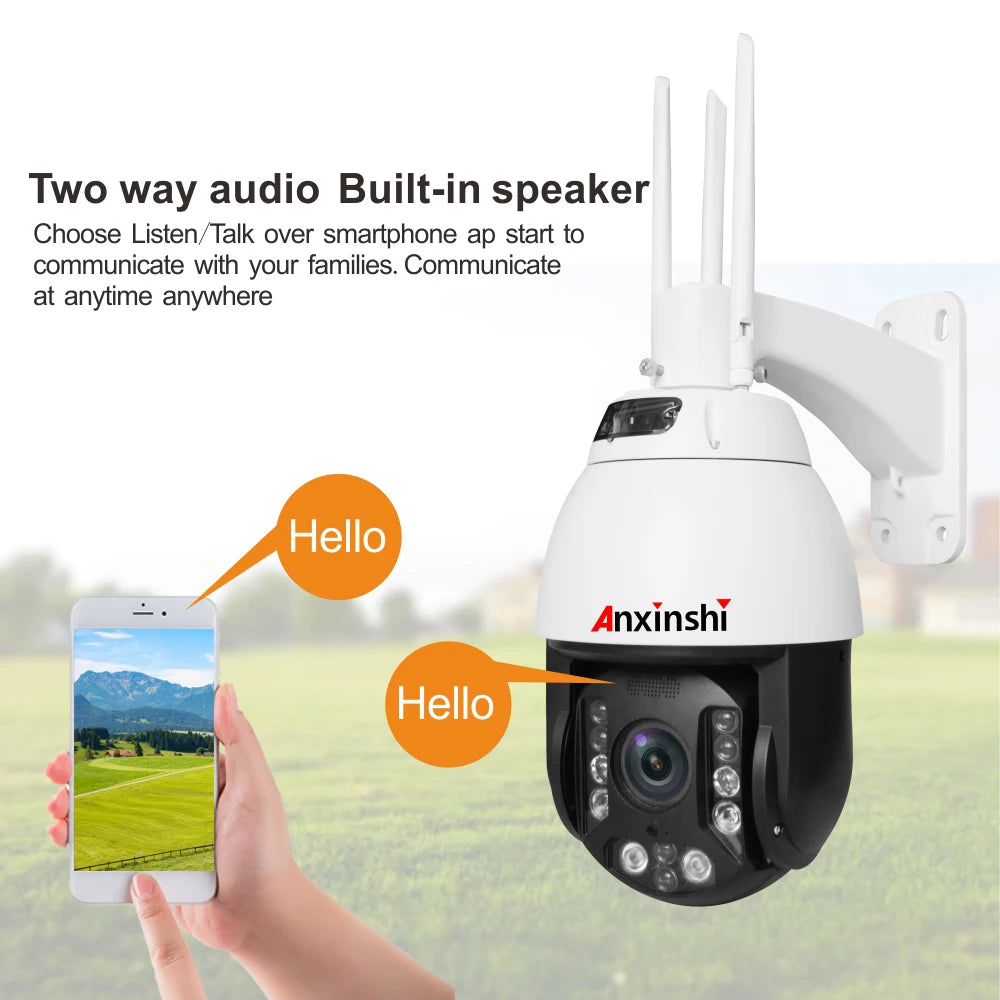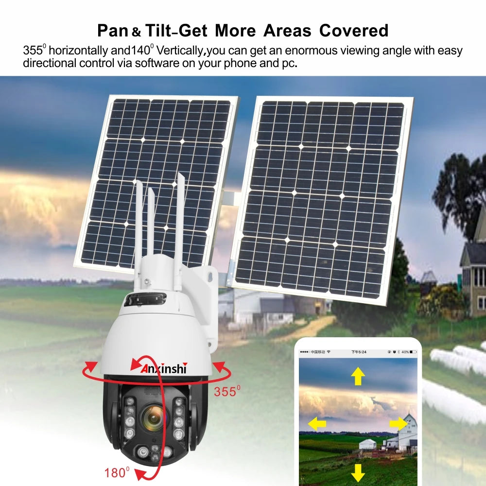 3. 360 degree continued rotation, Vertical Range -5°~90°, manual pan speed 0.1~40°/S, manual tilt speed 0.1~40°/S. 4. Network: 2G: GPRS / EDGE; 3G: WCDMA / TD-CDMA; 4G: FDD-LTE / TDD-LTE; Wi-Fi: 802.11b/g/n