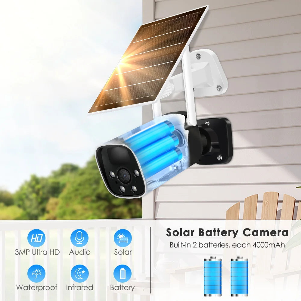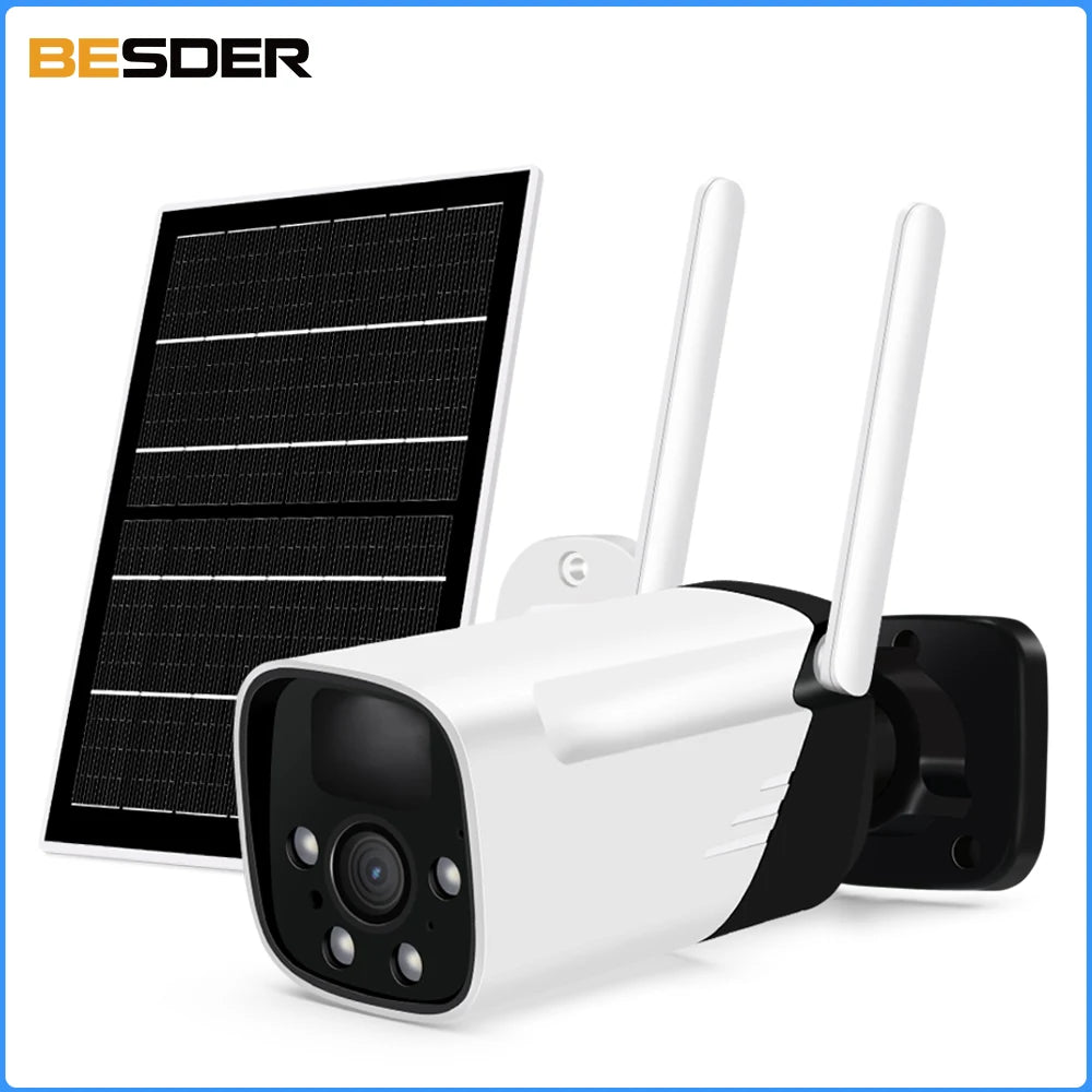 BESDER Waterproof 3MP Solar Security Camera Wireless Auto Tracking Outdoor Bullet Solar Surveillance Camera