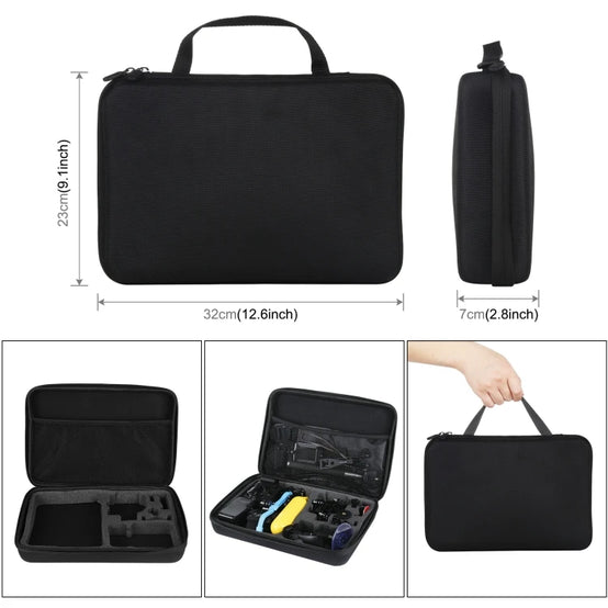6. Portable box is good shaped compartments for a action camera, outer housing, and accessories.