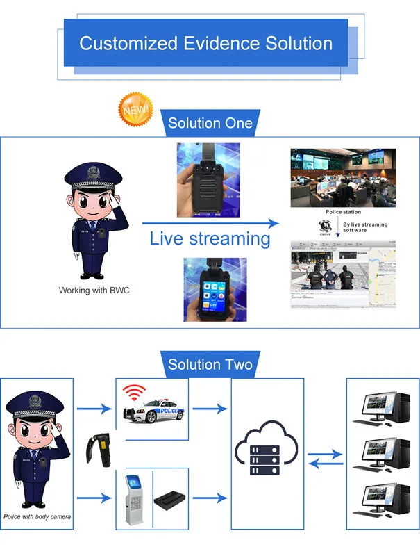 Sensor :GC5024 Storage capacity:Support 16G/32G/64G/128G(With Standard 32GB TF Card) 4G/3G function :"4G:B1/B3/B5/B8/B34/B38/B39/B40/B41 3G: B1/B5/B8/BC0(CDMA2000)" Wifi function:builtin,support 802.11b/g protocol/2.4GHZ GPS function:Built in Beidou global positioning module (support for mobile trajectory query) bluetooth function:BT4.0 Screen :2.8inch Touch screen Video Resolution:1080P@30fps/720@30fps, Video Bitrate:256kbps-8Mbps Photo Format:16mega pixels ,JPEG format Focus range: 0.5 meters - Infinity Zoom:Zoom 4 times Wide angle of view :140 degree Video/photo/audio/format:MKV(MP4)/JPG/AAC IR Light:6pcs LED infrade light builtin Night Vision:15 meters under the black environment LED white lights:Built-in one white LED lamp, can be used as a flashlight;Within 5 meters at night can be taken color Feature:Hardware double stream,uploading data more fluently Waterproof :IP67 drop height:2 meters of bare metal drop, body and data is not damaged Dimension/weight :102*60*28mm/180g Battery :Removeable 3600mah li battery,Up to 8 hours with one battery for 1080P high definition video recording.More than 72H continuous standby Operating temperature: -30 degrees C to +60 degrees C Management software :1.Real time play: support real-time 25 way data 2.Data upload: support 720P 1080P H.264 data upload 3.Beidou/GPS: Same Smarteye screen can check up to 256 camera position tracking 4.Wireless intercom:Real time 4G network wireless intercom,Multi person meeting