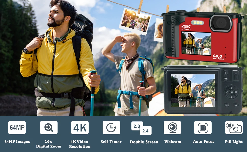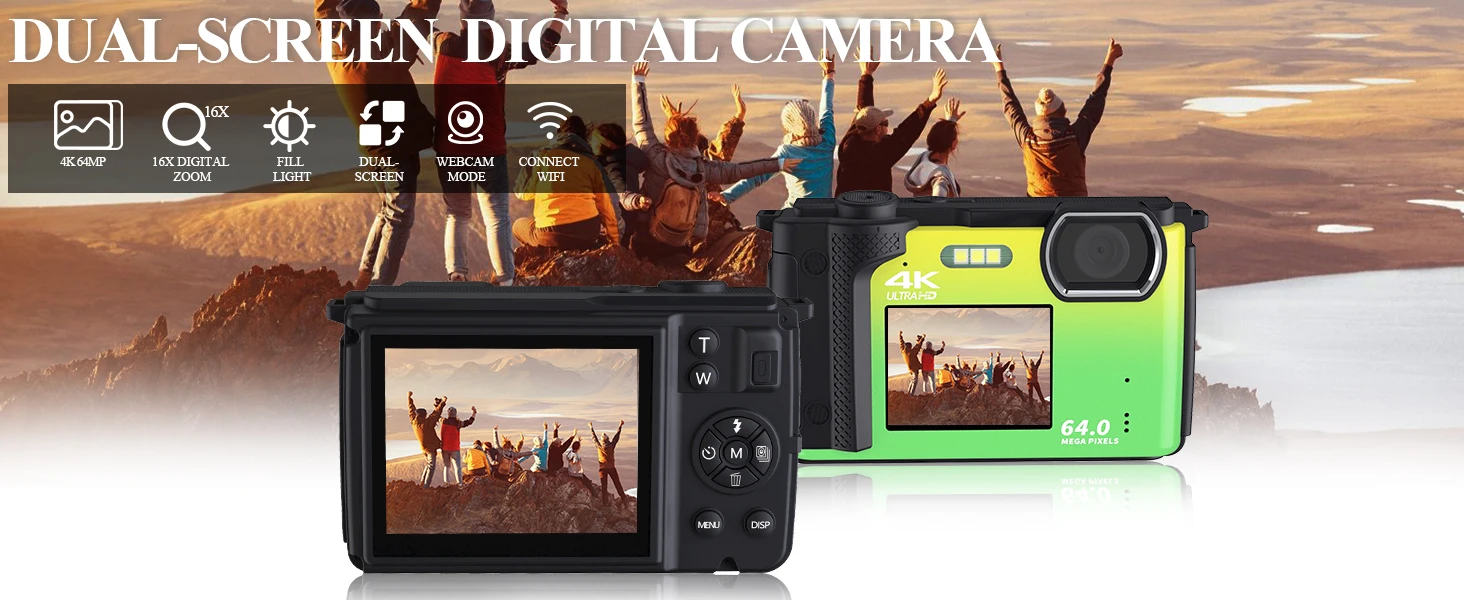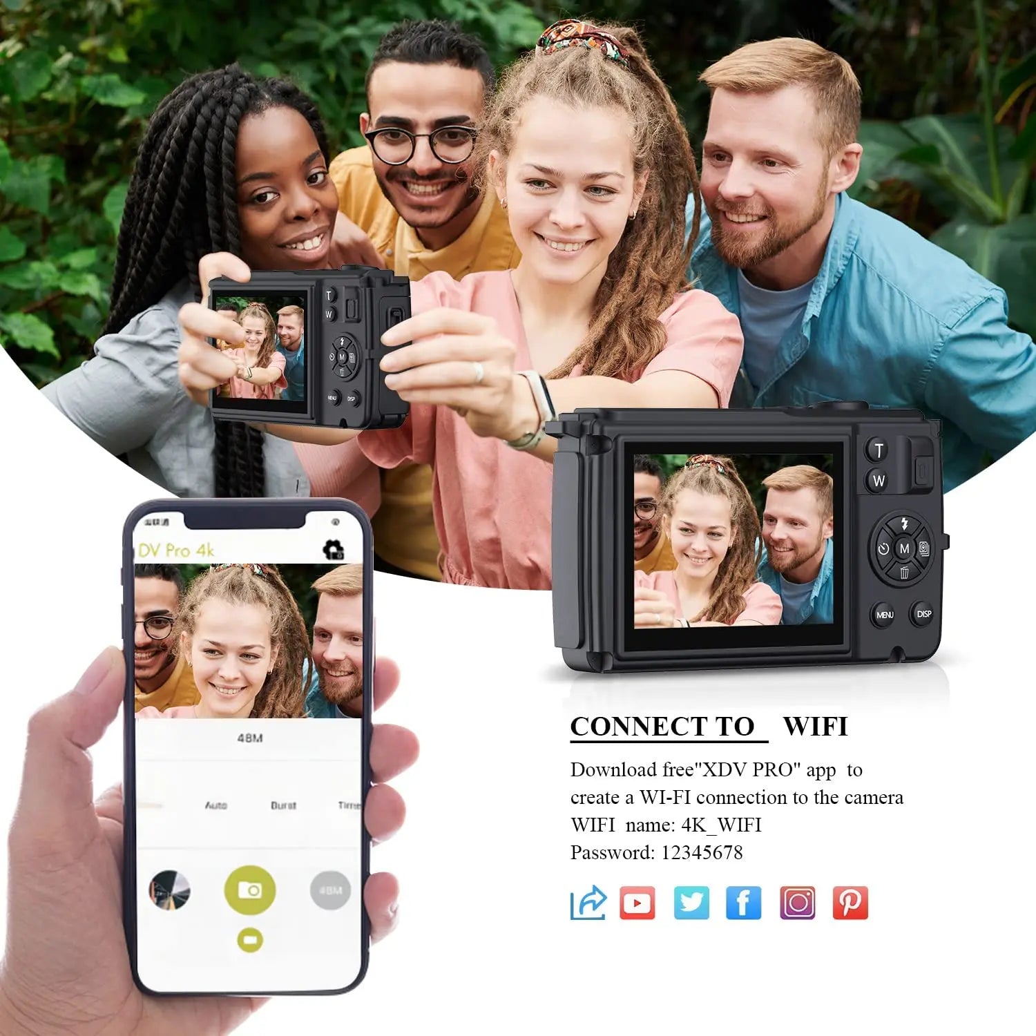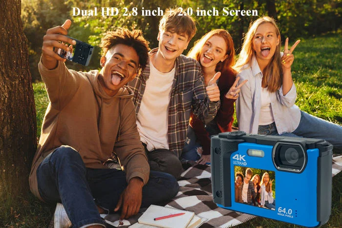 Compact Students 4K Digital Camera Selfie Video Camcorder 64MP Dual Screen WIFI Camera for Teens Kids