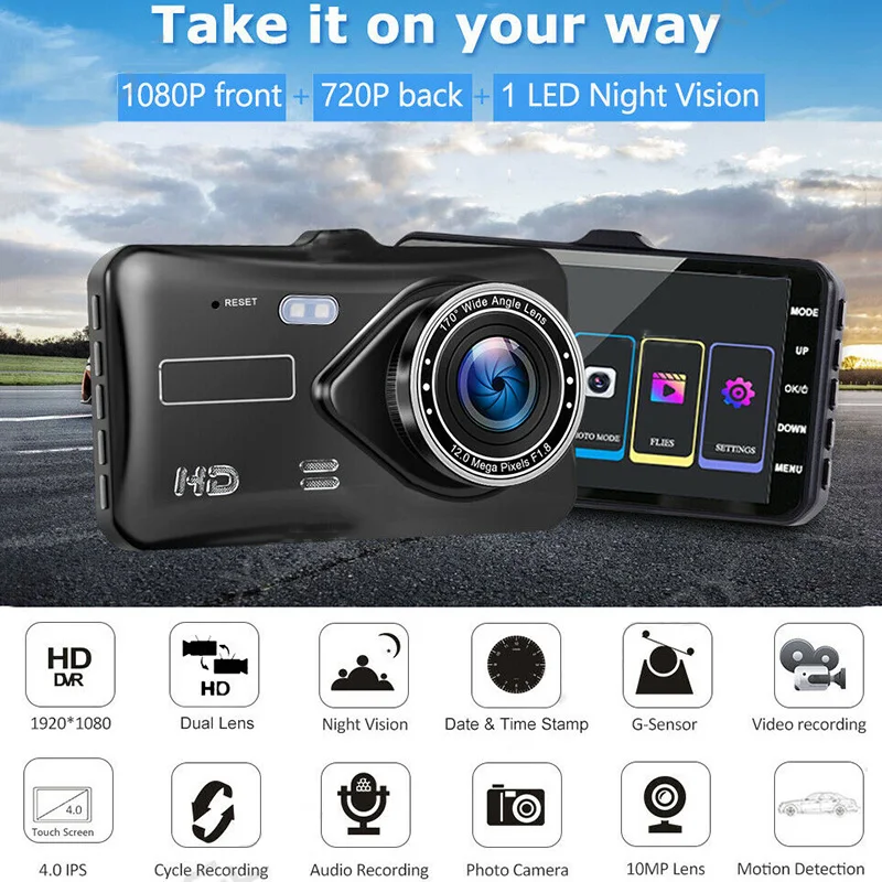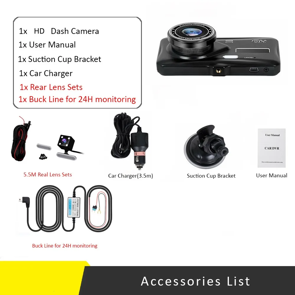 Dash Cam Front and Rear Camera CAR DVR Car Video Recorder Vehicle Black Box FULL HD 1080P Night Vision Driver Recorder