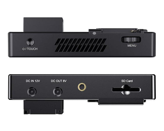 A Sony F970 external install and power kit design is added to the back of the monitor. The external kit can be used to install and install the external equipment, like wireless transmission, LED light, video converter and others that can be powered by a Sony F970 battery. This innovative external power supply design meets the need to power for external wireless transmission, LED light and other equipment, greatly saving the space occupied by the equipment and reducing the weight of photography equipment.