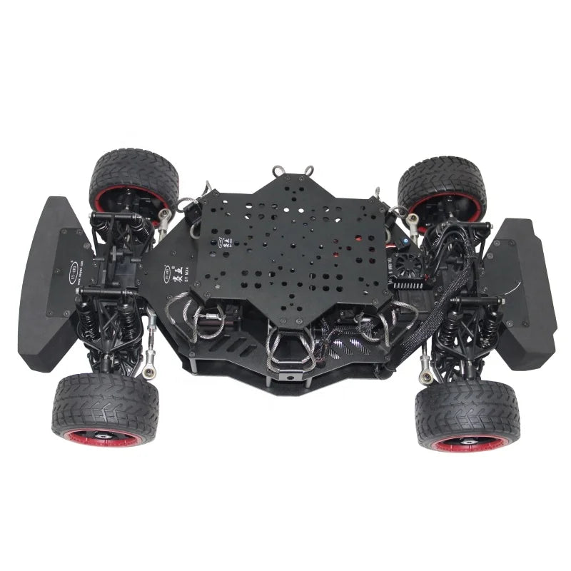 Name: 4WD RC Ronin Gimbal Car (Flash 4N) Model: SK MX4N Functions: All terrain 4WD Ronin Gimbal Car The SK MX4N Flash 4N is suitable for low-angle motion and sports shooting. The car has good off-road and shock absorption performance, four-wheel drive and four-wheel steering, freely controllable, smooth running, sensitive steering, full power, suitable for all kinds of roads and scenes, and track conversion kits. Optional, suitable for shooting in desert, snow and other scenes. Large load, can be equipped with DJI Ronin-S, Ronin-MX, Ronin 2 and professional cine camera, which makes the camera's position and angle more flexible and diverse, giving a super smooth and stable picture enjoyment. Unique damping system helps eliminate vibration on the ground caused by the collision, and this means a low and steady and has many potential applications. There are not the problems about lack of space for other stabilizer caused by too tall. Features: - 4.0mm 6061 T6 aluminum alloy chassis, steel gear and nylon suspension. - Belt dive to reduce the noise. - 4WD Version, four-wheel steering with easy handling and running smoothly, steering is very flexible, high level metal frame. - Maximum speed: 80km / h - Maximum load: 20kg. Low angle, sports and shooting, compatible with DJI, Talta, Zhiyun, Feiyu, Freefly, Shotover and other brands of three-axis stabilizer and professional Cine Camera. Esp. suitable for DJI RONIN2 and professional Cine Camera.It is suitable for film-makers. - 200A waterproof brushless ESC - 800KV brushless motor - Dual battery power system - Full metal independent suspension hydraulic shock absorption system, professional steel wire damping system - 2.4G 3 Channel LCD remote control, BER Brand. - Tire:on-road tires. Optional tires suitable for different terrain off-road, ice surface or snow. - Damping system: the middle is steel damping to ensure picture stability when starting and stopping time. Independent system parts are not deformed steel wire, shock resistance vibration absorption equilibrium. With light, solid alloy fittings, even if the road bumps, but also to maintain steady Technical Parameters: Products size: 880*570*280mm (without RONIN) NW: 18KG The power system: 200A waterproof ESC 800KV brushless motor Battery: 2 * 14.8V, 40C, 5200MAH Lipo batteries Four-wheel steering system, two 55kg servo; 2.4G 3 Channel BER LCD remote control; Package: Carton Size: 83 * 55 * 29cm GW: 23.5KG Including: Car Frame. 1 set 3 Channel BER Remote control with receiver. 1 set 800KV Brushless motor 1pc 200A ESC 1pc 14.8V, 4S, 40C, 5200mAh Lipo battery 2pc 55KG servo 2pcs B6 charger 1set Low voltage alarm 2pc Spare screws for car. numbers Multi - function wrench. 1pc Hexagon screwdriver. 1pc Tire sleeve. 1pc Remarks: 1. We reserve the right to change specification without prior notice. 2. The product does not contain DJI RONIN 2 gimbal and any camera. Applications: Ronin-S Gimbal Car/Ronin-SC Gimbal Car/Ronin-MX Gimbal Car/Ronin-M Gimbal Car/Ronin 2 Gimbal Car/Shotover G1 Gimbal Car/Freefly MOVI Gimbal CAR.