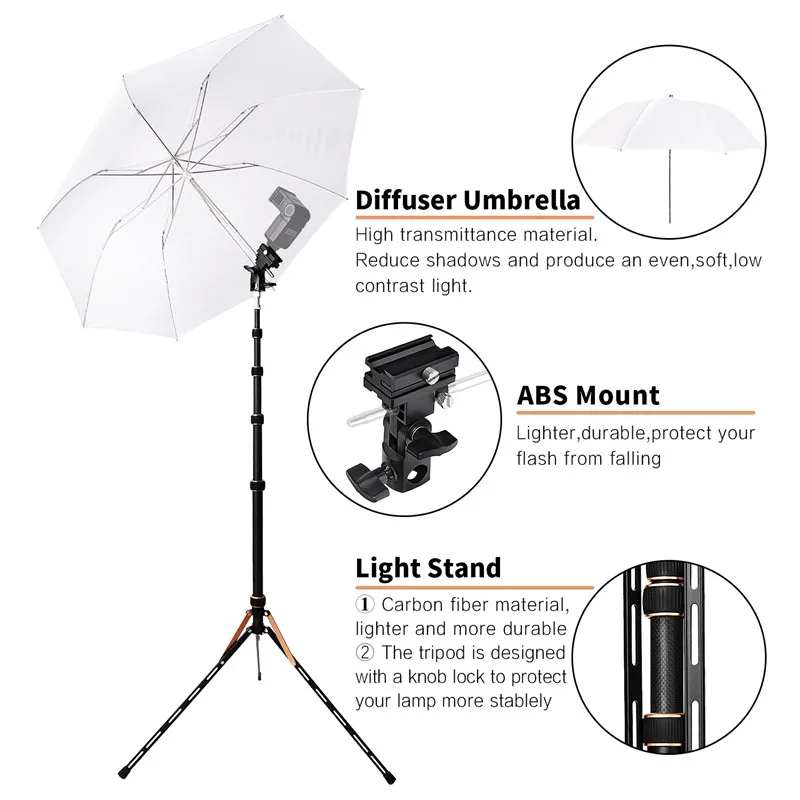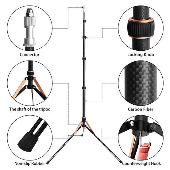 Fosoto FT-220 Carbon Fiber Camera Tripod With 1/4&3/8 Screw Head led Light Stand For Photo Studio Photographic Lighting Umbrella