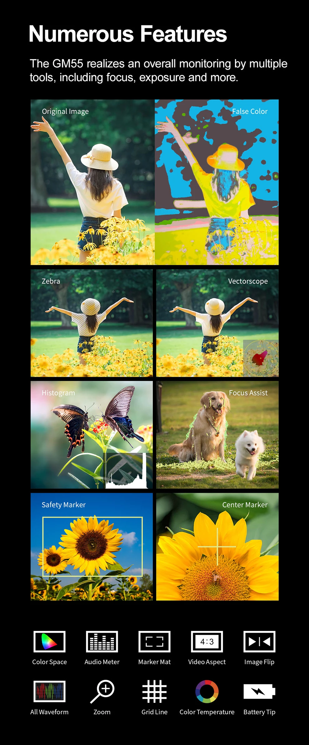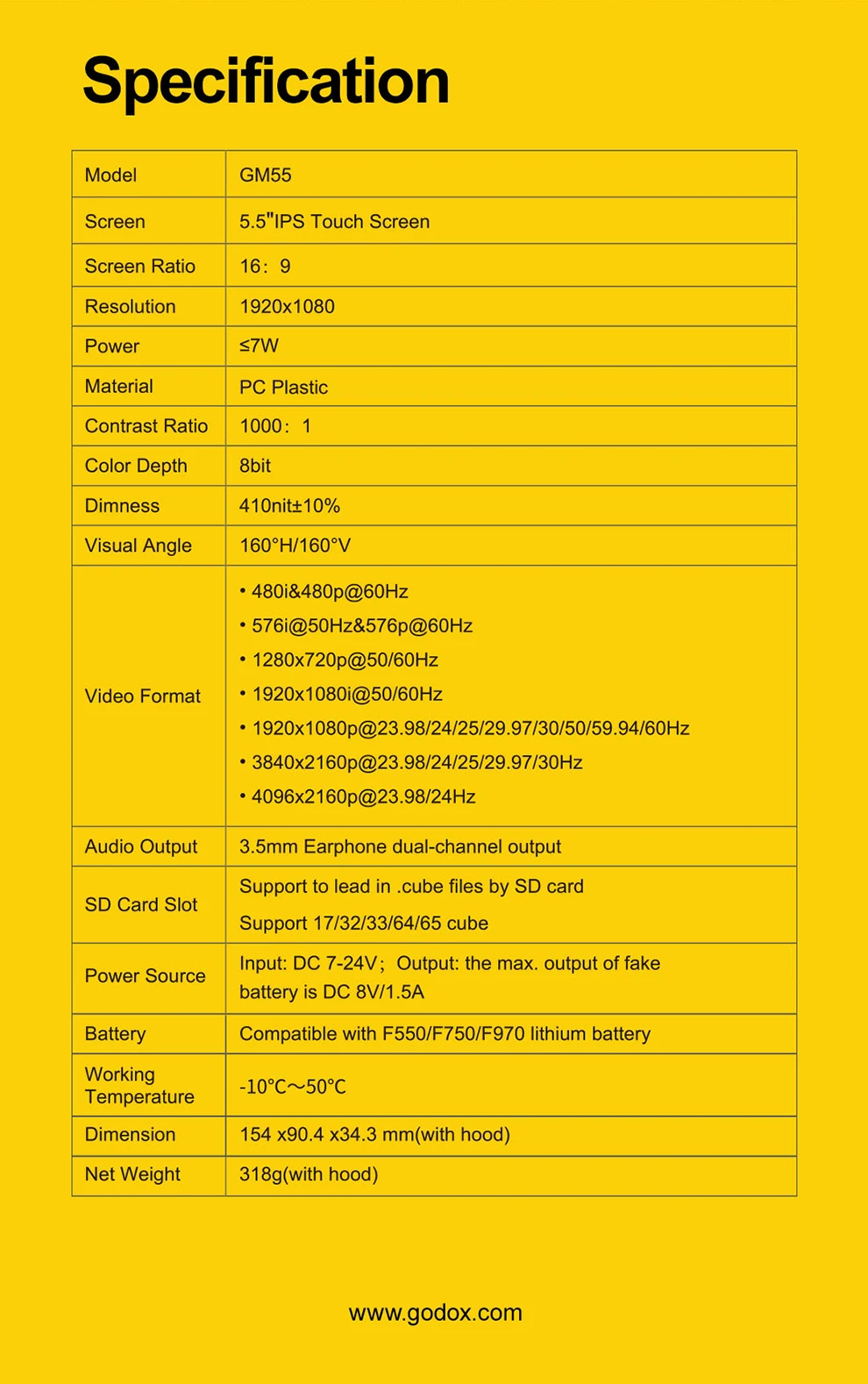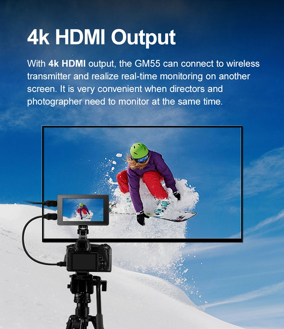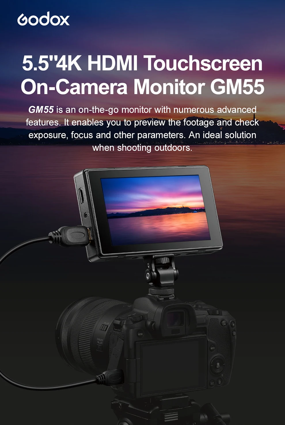 Godox GM55 4K Monitor 5.5 Inch on Camera DSLR 3D LUT Touch Screen IPS FHD 1920x1080 Video 4K Field Monitor Dslr