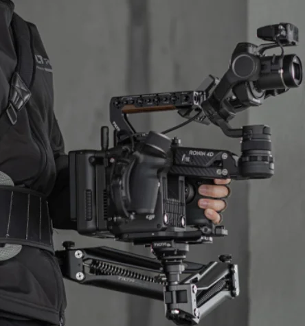 * The spring-loaded stabilizing arm and support vest are designed to redistribute the weight closer to your body, allowing you to operate the rig longer than traditional handheld setups.