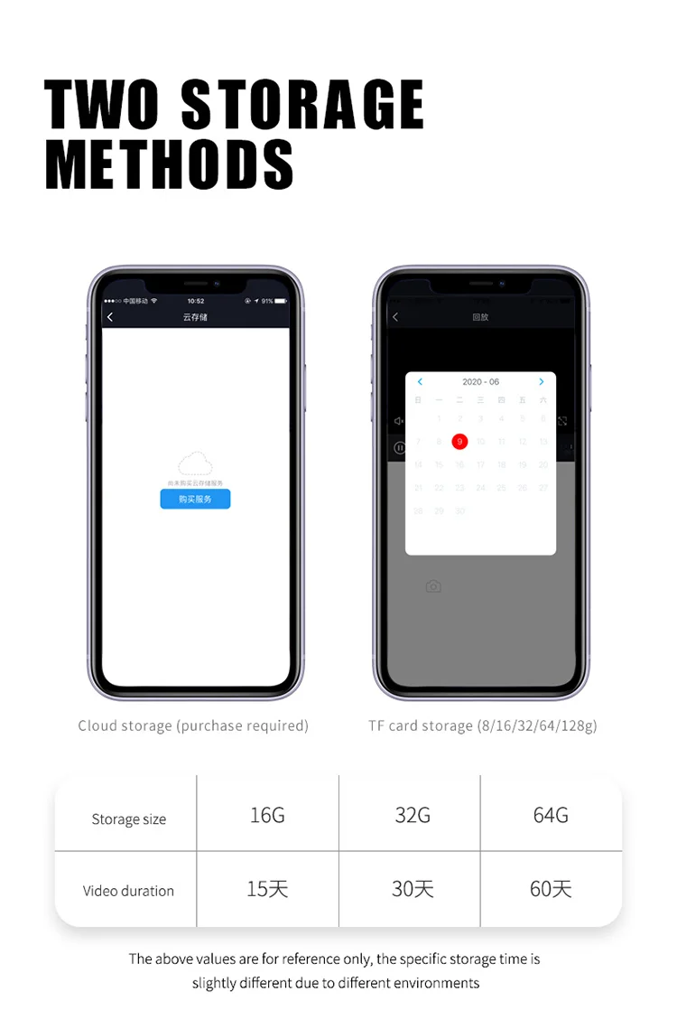 Provide Cloud storage service, When visitors press your doorbell or any motion is detected, the WiFi doorbell will record a 8-second footage to the cloud for your review on APP(Upload up to 20 times per day). The video doorbell Support maximum 32G memory expansion with TF card slot.