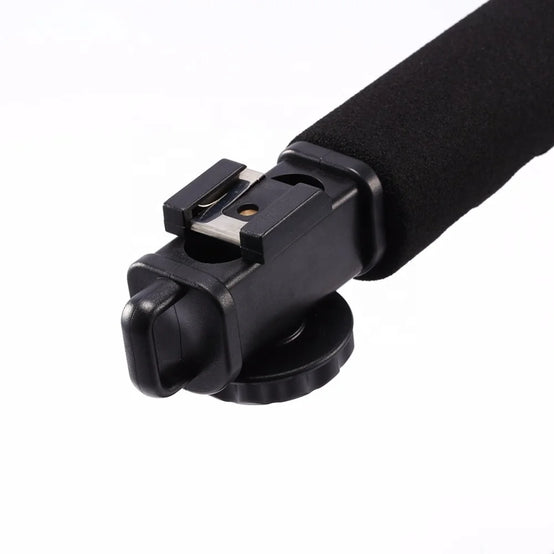 (Kaliou)The handle can be used by both a professional or amateur user. This incredible support offers stability and control. The hot shoe attachment enables you to add a video light or flash. Extremely useful product for skateboarding and other extreme sports.
