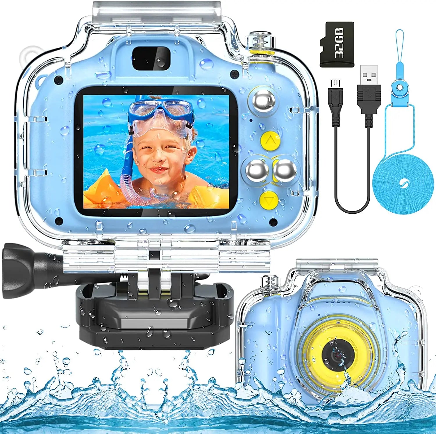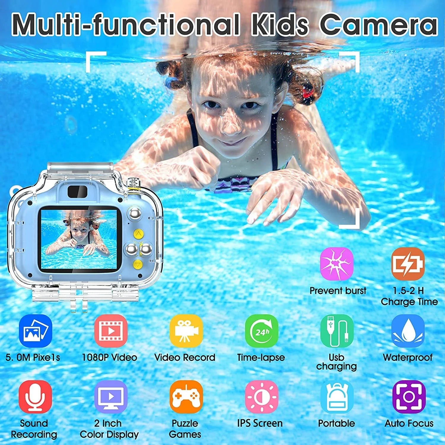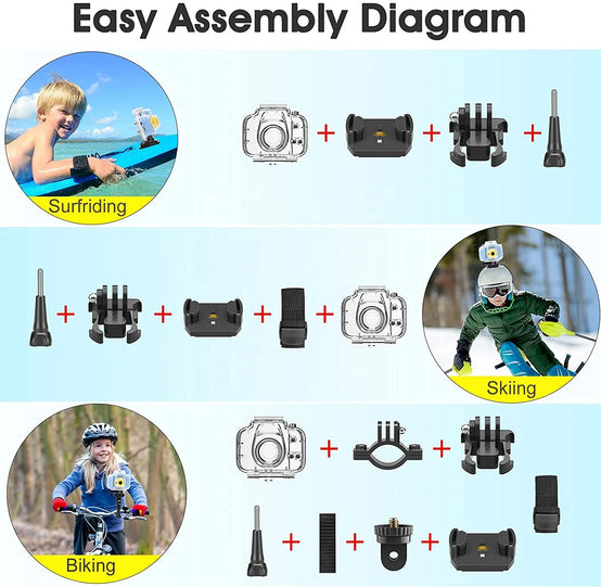Kids Camera Underwater Waterproof Camera for 3-12 Year Old Boys 1080IPS 2 Inch Mini Kids HD Video Digital Indoor Outdoor Action