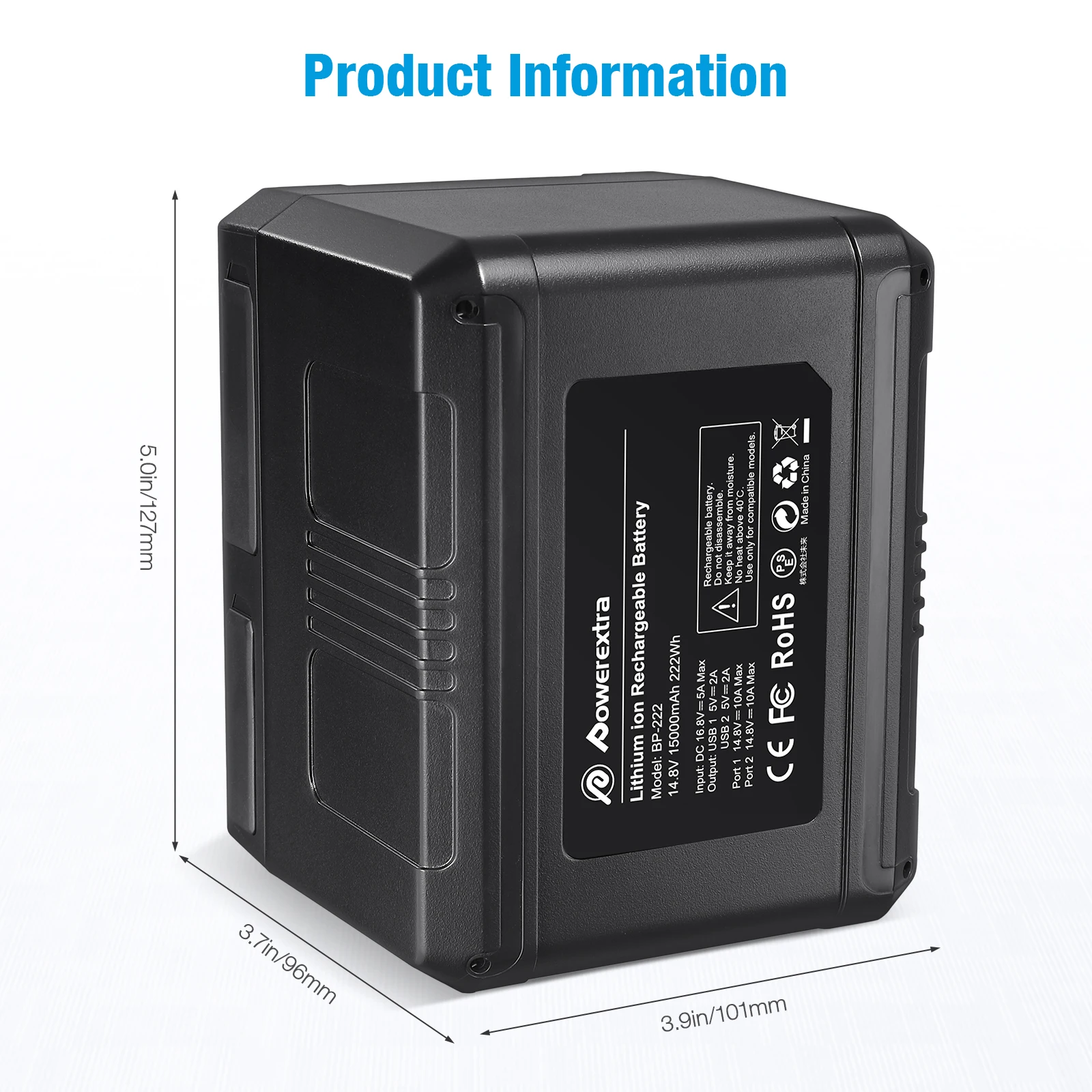 * 【High Capacity】 15000mAh/ 222Wh Voltage: 14.8V Battery Type: Polymer Li-ion; Providing same life time of original battery. Super high capacity battery for Black magic Ursa Mini and for Epic cameras.