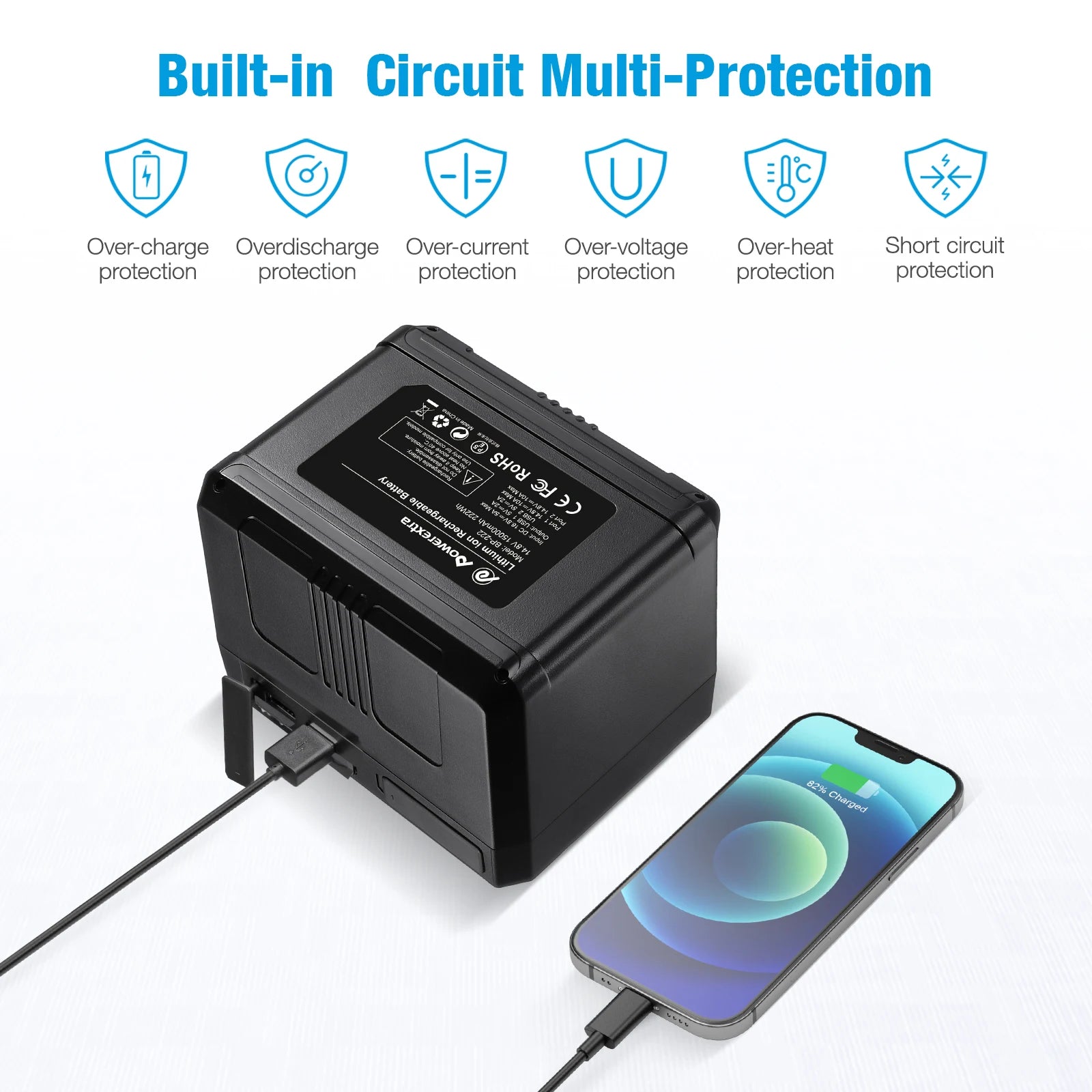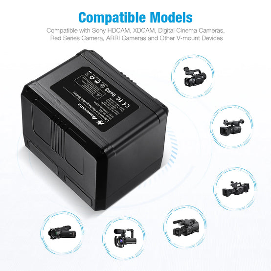 * 【Compatibility】Compatible with cameras using standard V Mount / V Lock batteries. Compatible with: HVR-S270C PMW-EX330K PMW-EX330L, PMW-580K PMW580L, PDW-680 PDW-700 PDW-850,PMW-TD300,HDW-F900R HDW-680 HDW-800P, PMW-F55 PMW-F5,etc. Super-long lasting charge for each use