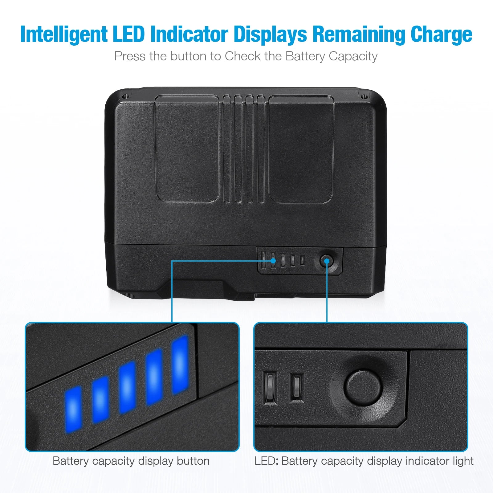 * 【LED Display 】5-Level LED Indicator displays remaining charge, super-long lasting charge for each use and more than 500 full recharge cycles over life of the battery. Charger Indicator: Easy to tell if the battery is fully charged