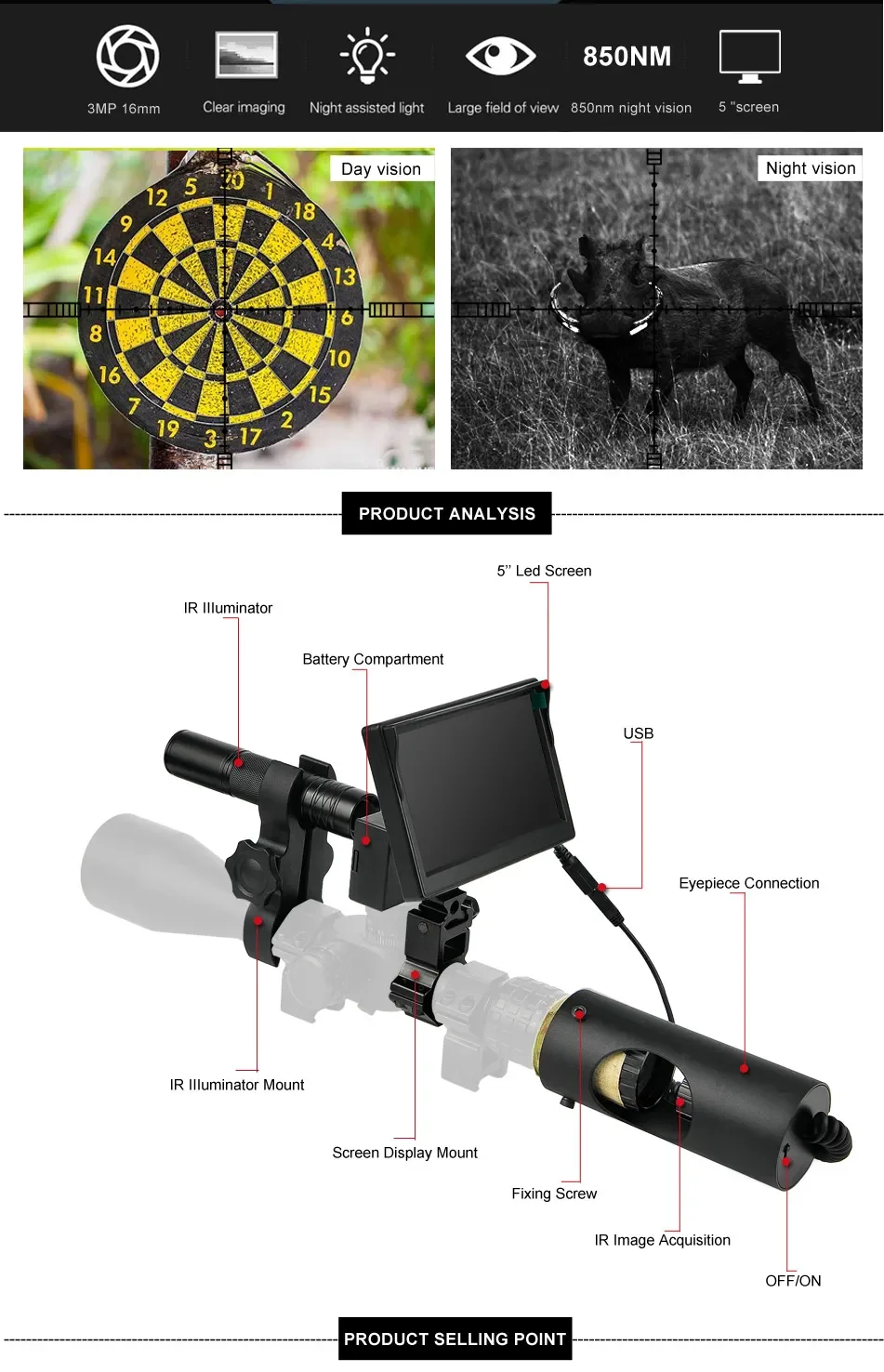 LUXUN Tactical 850nm Infrared LED IR Digital Night Vision Device Hunting Camera Night Vision Scopes For Hunting
