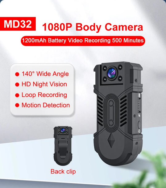 MD32 Factory Fast Delivery HD Body Worn Camera Black Baby Monitor Camera HD Automatic Night Vision Motion Detection Body Camera