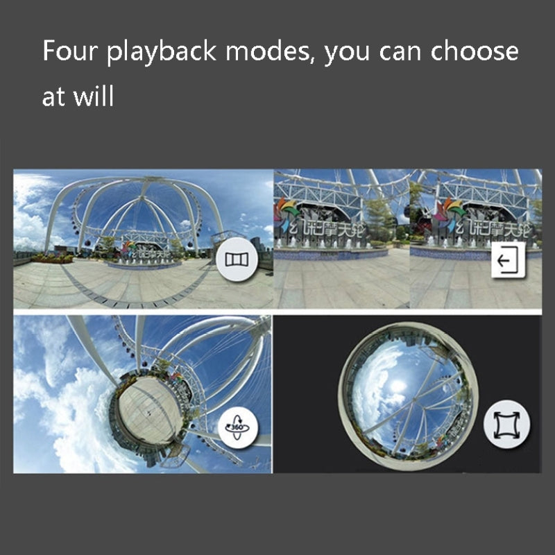 1. Material: ABS, electronic components 2. Display mode: Normal mode, 360 mode, quadruple mode, asteroid mode 3. Support languages: Simplified Chinese, Traditional Chinese, English, Japanese, Russian, French, German, Spanish 4. Additional features: Recording function, support WIFI 5. Sensor type: CMOS 6. Optical zoom factor: None 7. Sensor pixel: 13 (million) 8. Aperture: F2.8 9. Photo resolution: 6112x3056, 3840x1920, 2880x1440 10. Video resolution: 3840x1920@30fps, 2880x 1440@30fps, 1920x960@ 30fps 11. LCD screen size: 0.96 inches 12. Whether touch screen: Non-touch screen 13. Lens: Double fisheye lens 14. Storage medium: Microsd (TF) card 15. Storage standard: U3 and above 16G-32G genuine TF (micro-SD) card 16. Static effective pixels: 3200 (million) 17. Horizontal resolution: 720 18. Microphone: Stereo 19. Anti-shake performance: No anti-shake 20. Whether to support night shot function: Not supported 21. USB interface: USB 2.0 22. Other interfaces: HDMI, USB wire control 23. Built-in battery: 1200 mAh lithium battery 24. Camera battery life: 2 hours 25. Appearance size: 13 x 4.5 x 2.3 cm 26. Net weight: about 100 grams