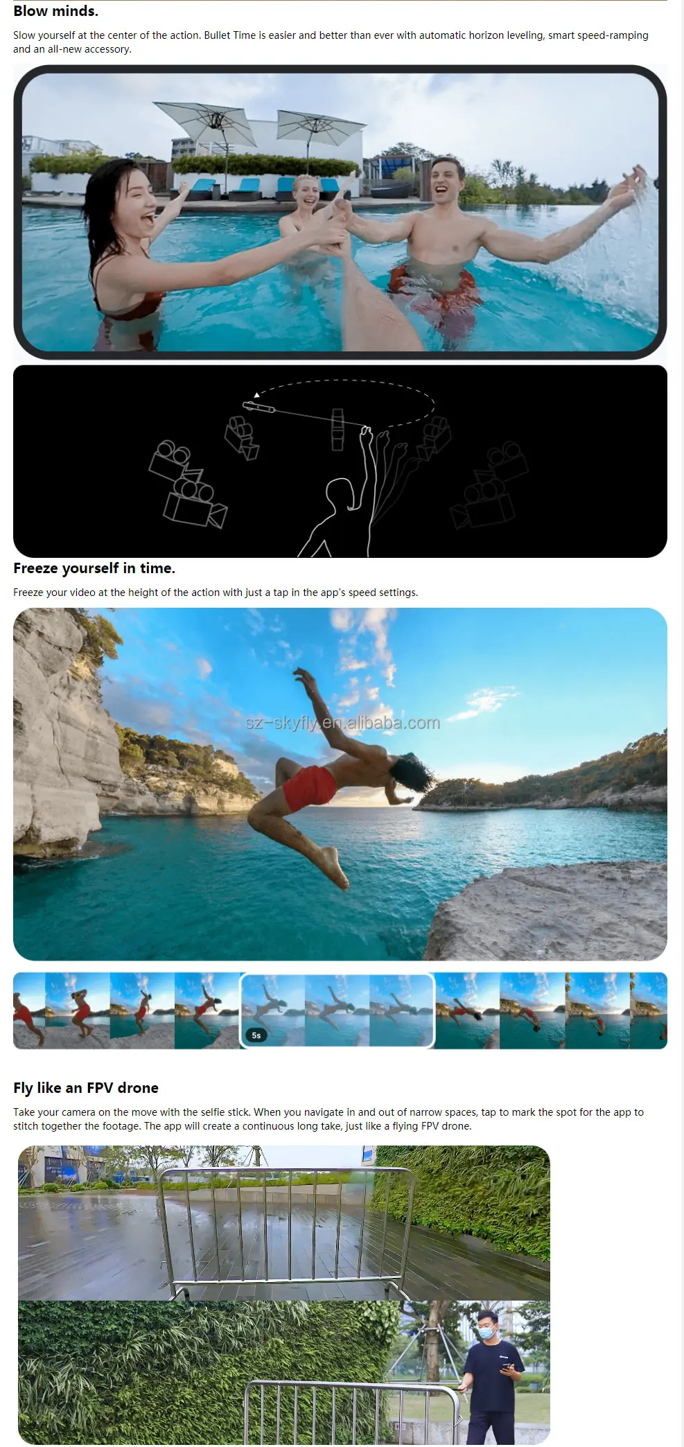 with Insta360 bullet time handle grip(Not included) to explore in third-person view.