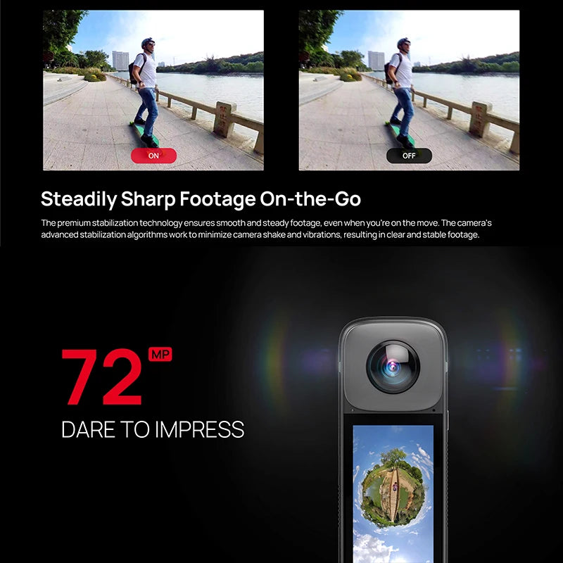 Newest PanoX V2 12K 5.7K 360 Video 72MP Captivating Photo Panoramic Action Camera For Motorcycle Riding