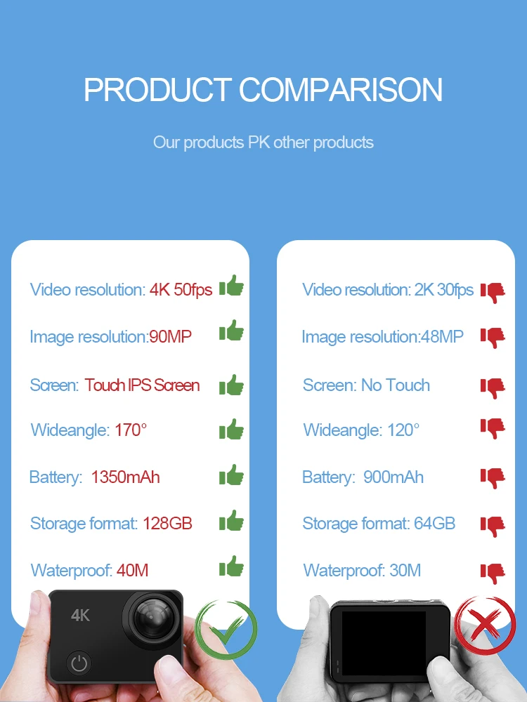 NOVATEK Latest High Quality 90MP 50fps IPS HD Touch Screen IP68 40m Waterproof 4k Sport Action Camera