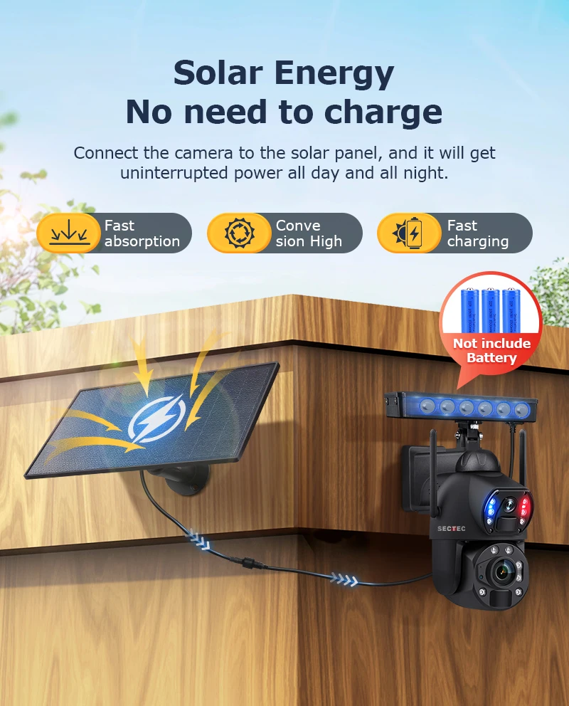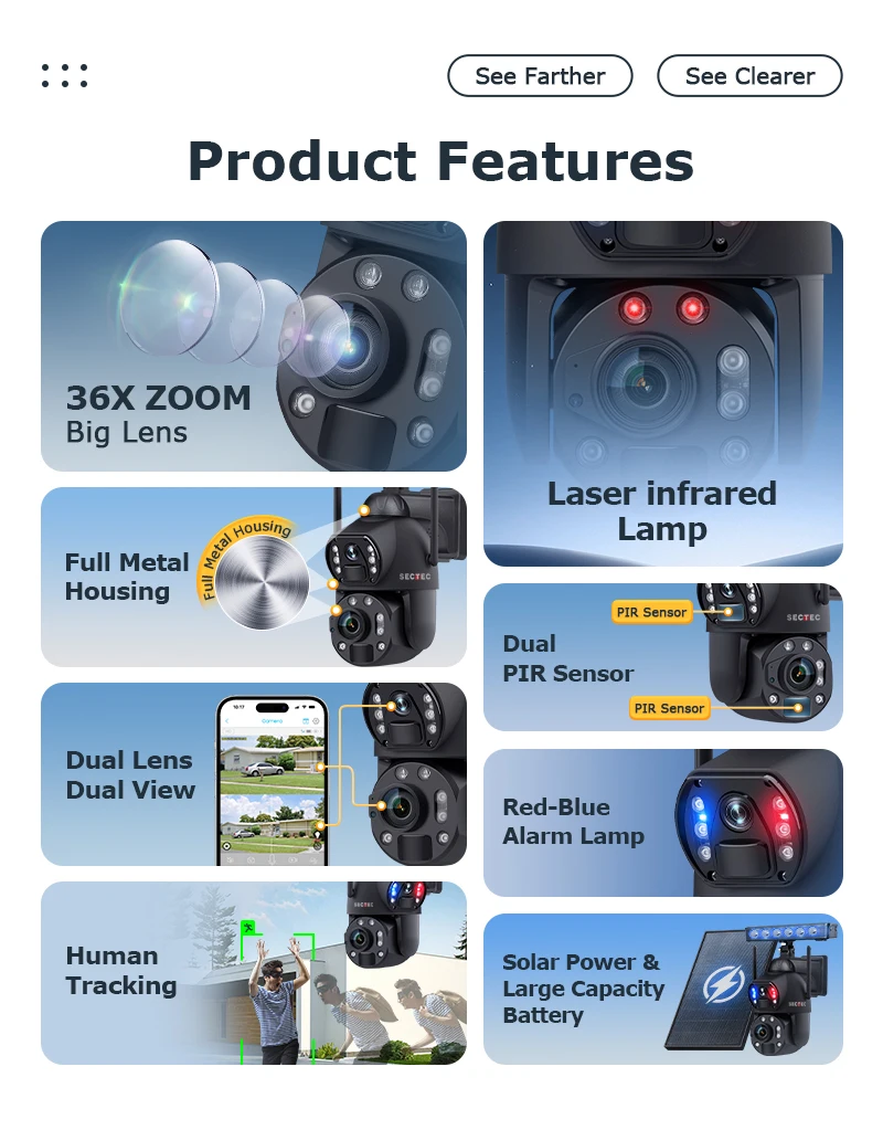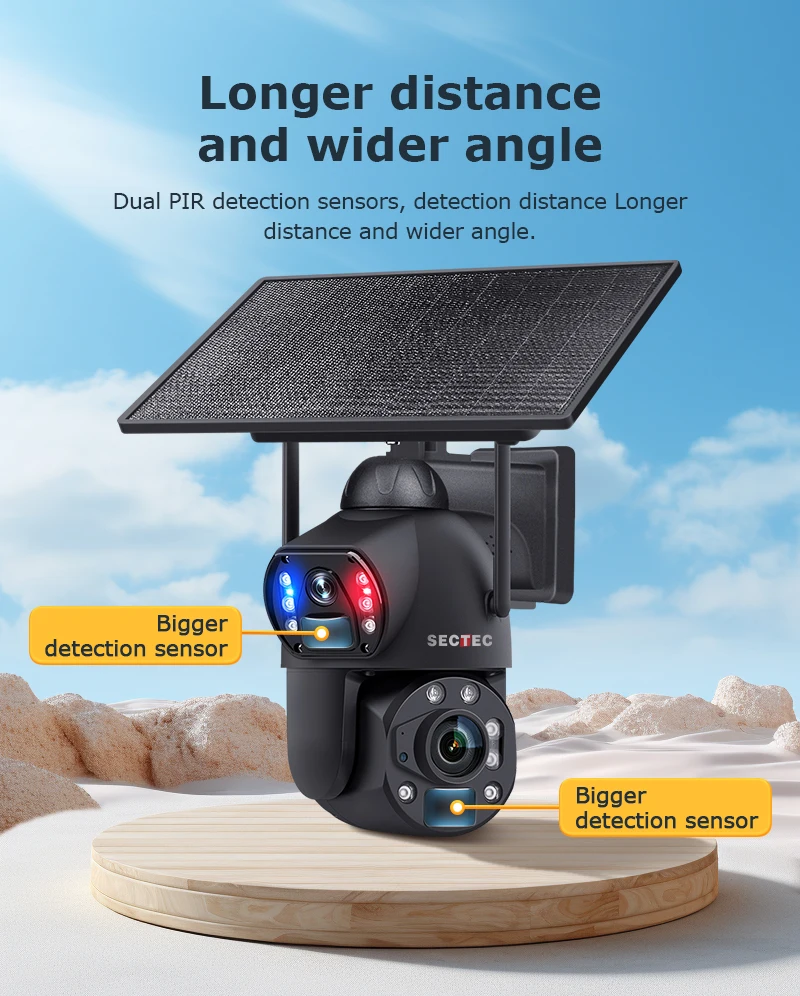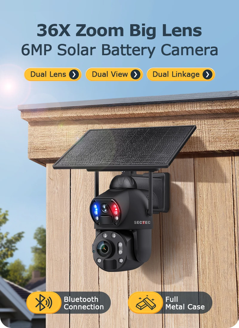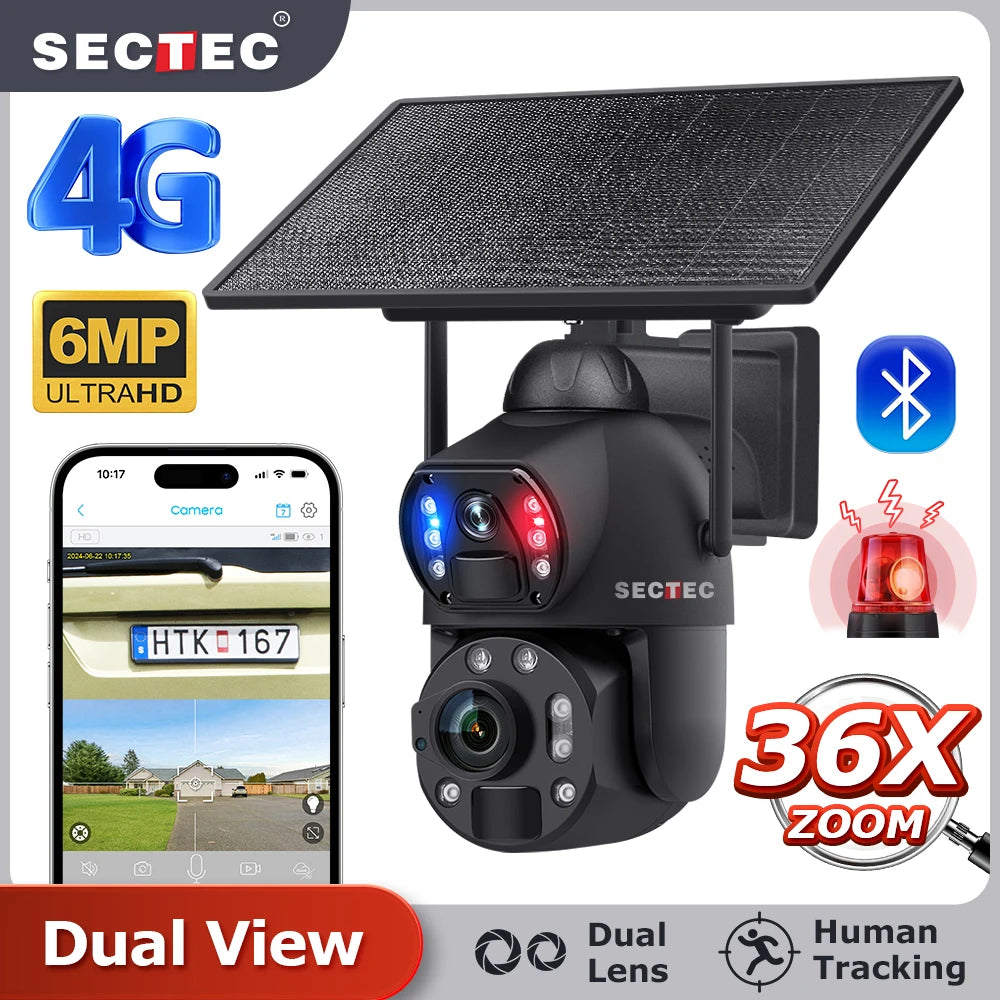 Sectec New HD 6MP 36X Zoom Dual Lens Dual View CCTV Solar Security 4G Outdoor Cameras Waterproof Metal Camera