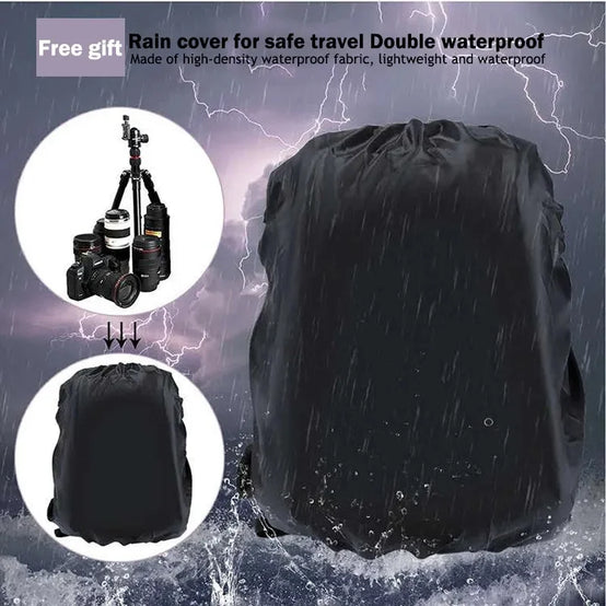 Digital Shoulder Camera Bag Outdoor Waterproof SLR Camera Bag Photography Backpack Suitable for Photographers, Men and Women, With Rain Cover, Tripod Stand