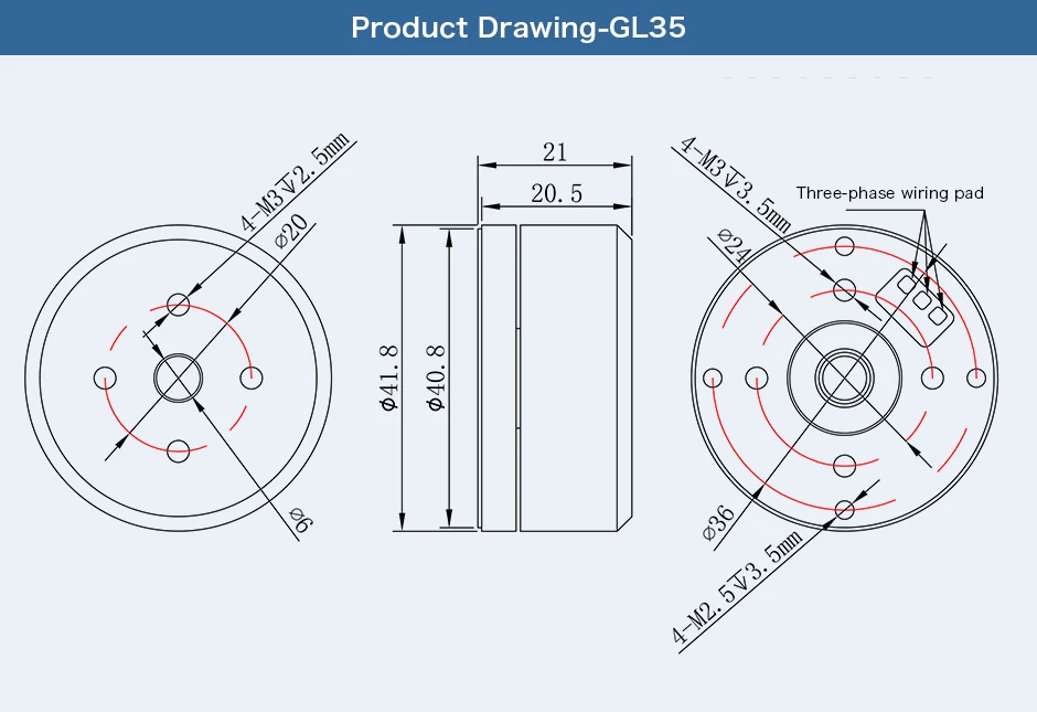 T-Motor GL35 IP45 Custom 100kv High precision Flat camera gimbal bldc motor.
