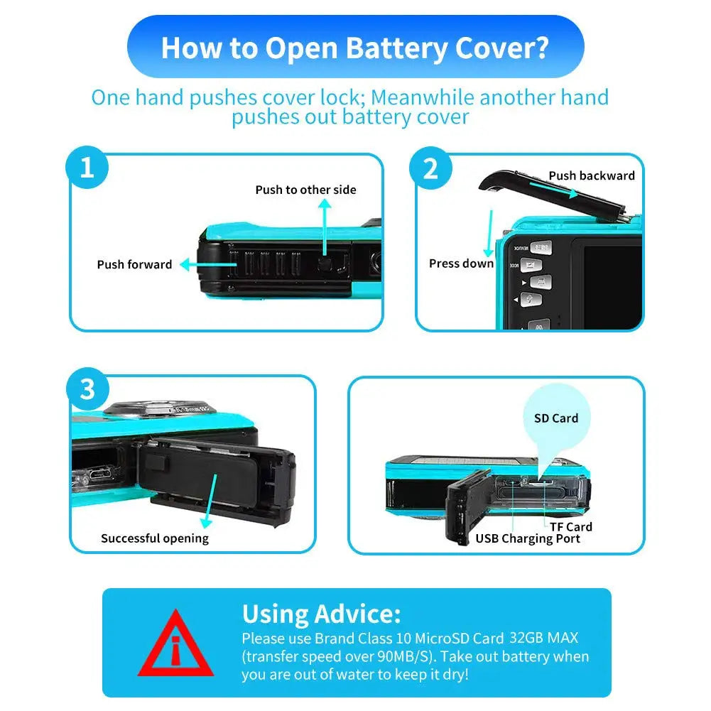 Underwater Digital Camera Full HD Dual Screen Action Camera Video Recorder Selfie Camera