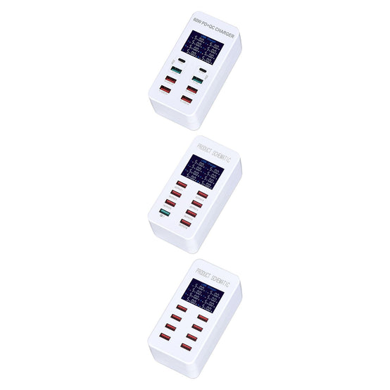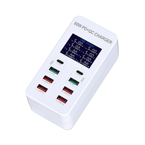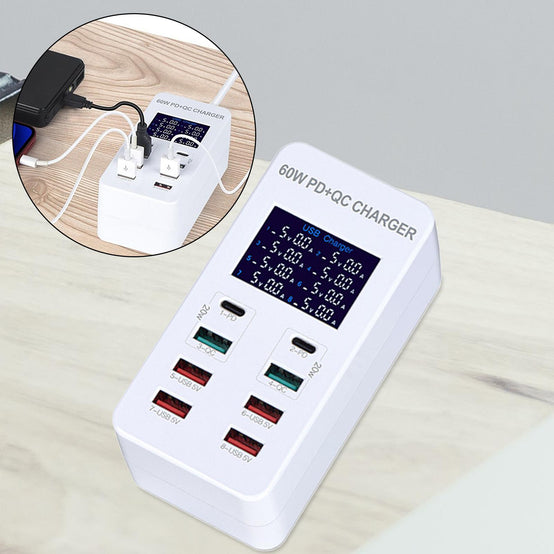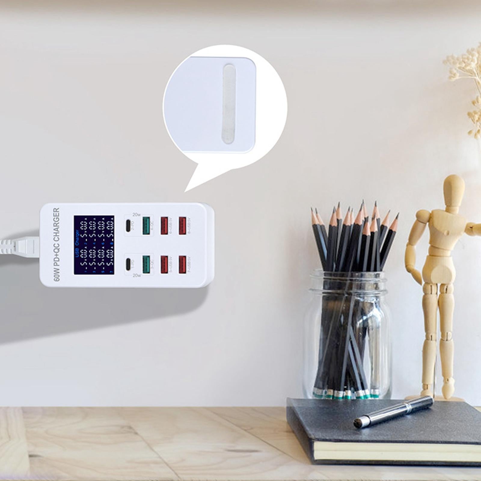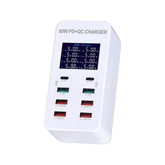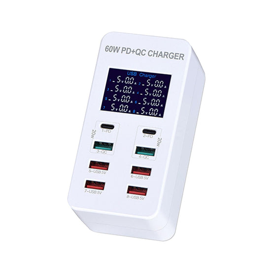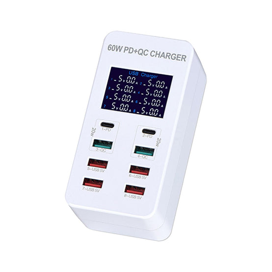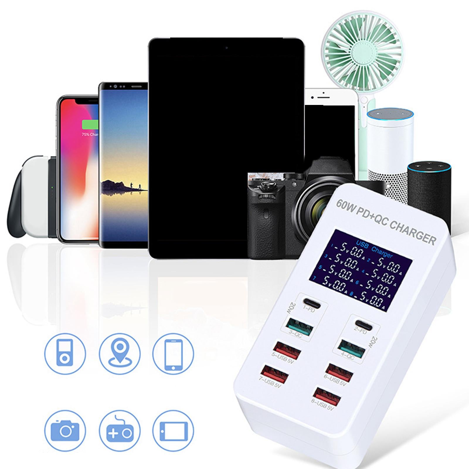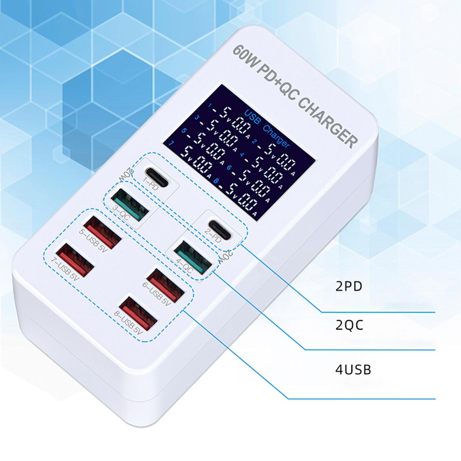 - Multi Port USB Charging Station:This USB charging station supports 8 Ports Charging to charge 8Pcs devices, with 2Pcs quick Charge 3.0 USB Port and 2 USB c, 4 USB 2.0 Ports, with a shared total maximum of 60W.