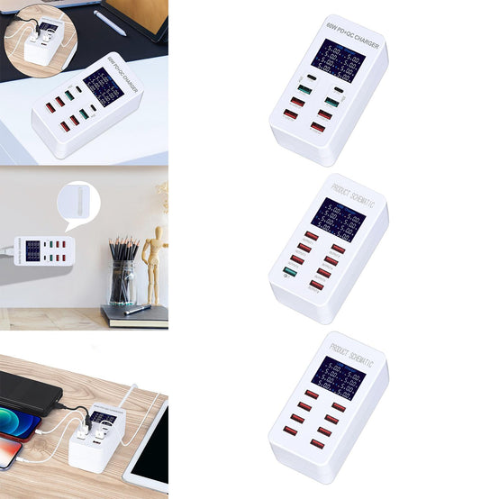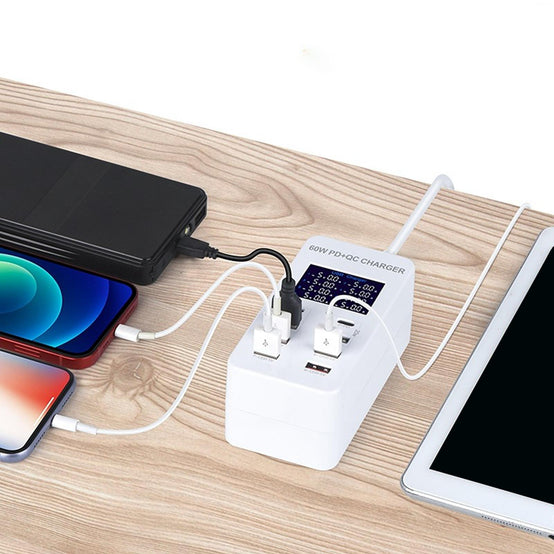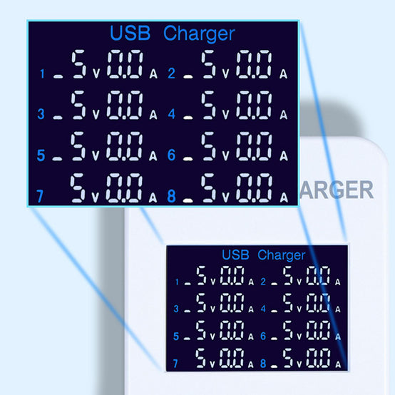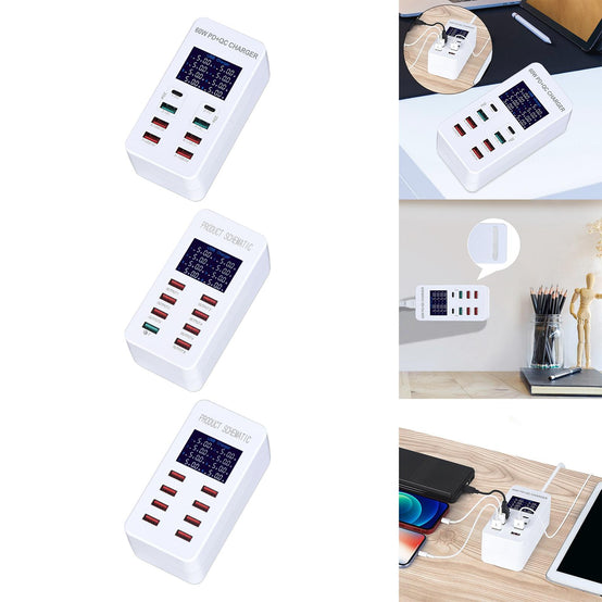 - LCD display: Comes with LCD display Screen to show the charging of every USB ports, Built in intelligent management chip, intelligently adapts to the charging current, charging without damaging.