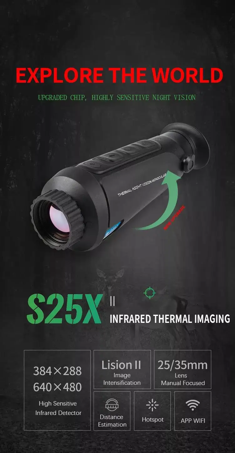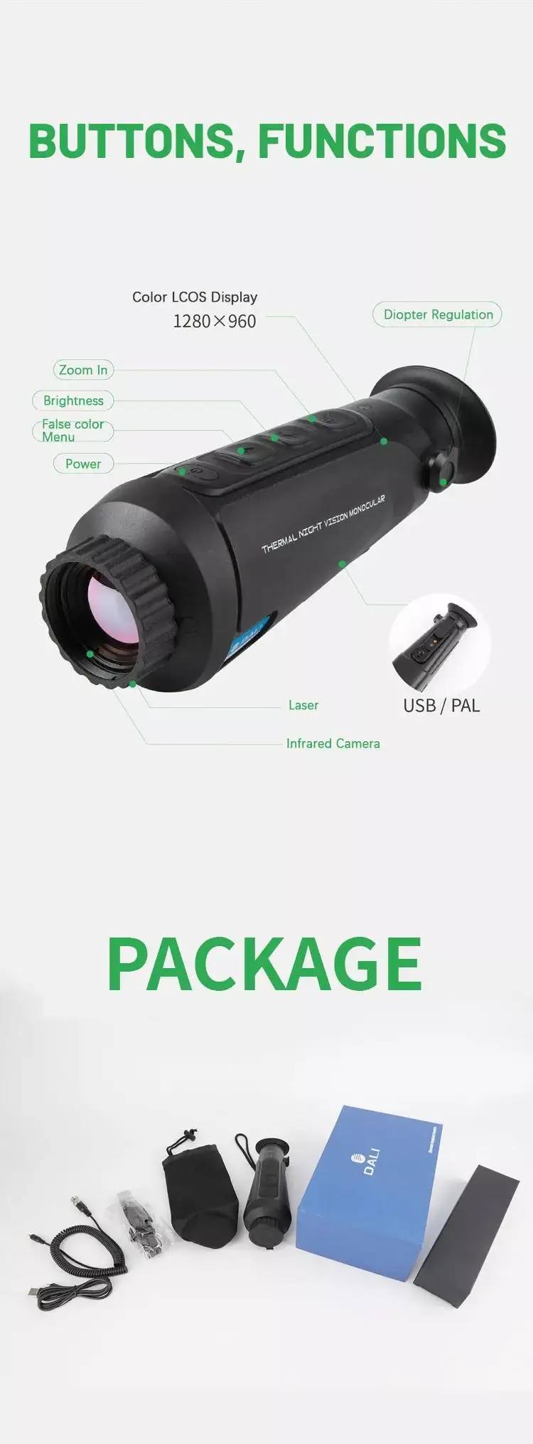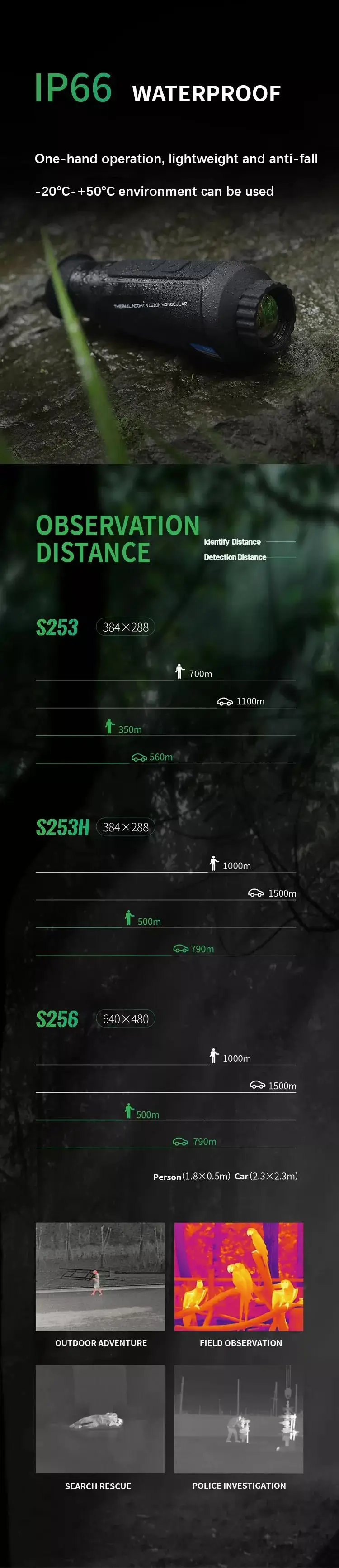 Domestically developed detector with high sensitivity (384*288,17μm) -Hand-held thermal imaging monocular. -Small size, one-handed
