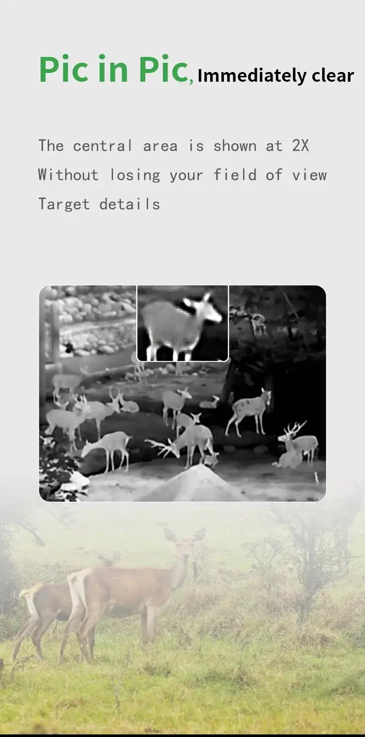 · Built-in reticle and picture-in-picture function, more easy to observe and aim.