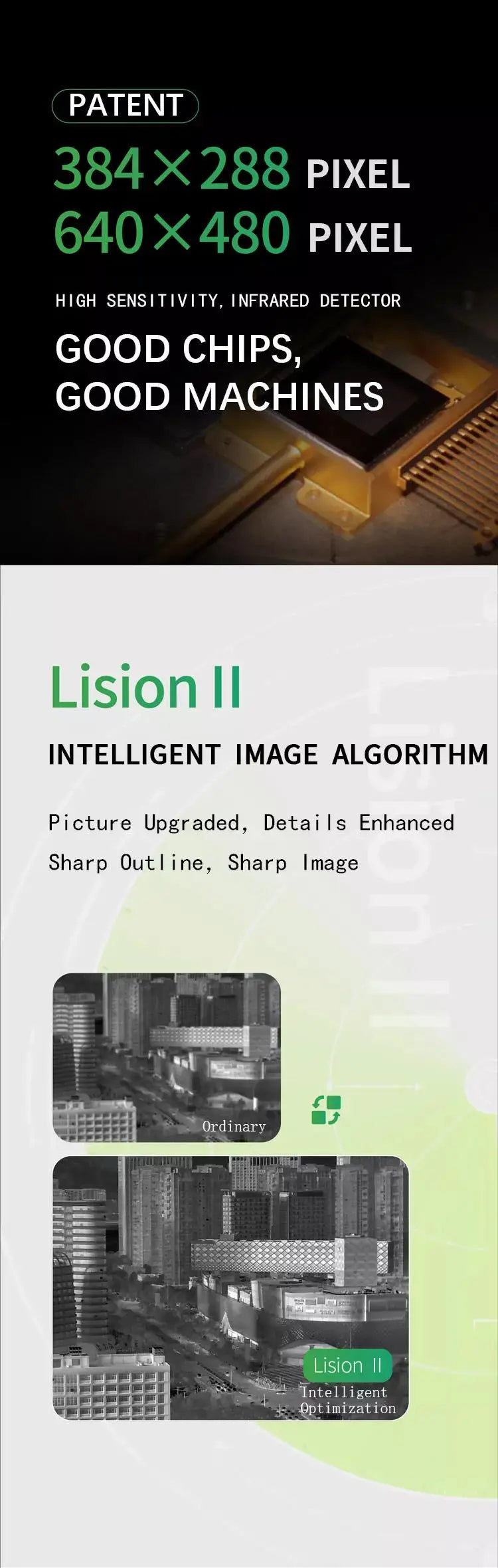 high sensitivity (384*288,17μm) · HD display screen with resolution 1280*960 for higher display range and image magnification.