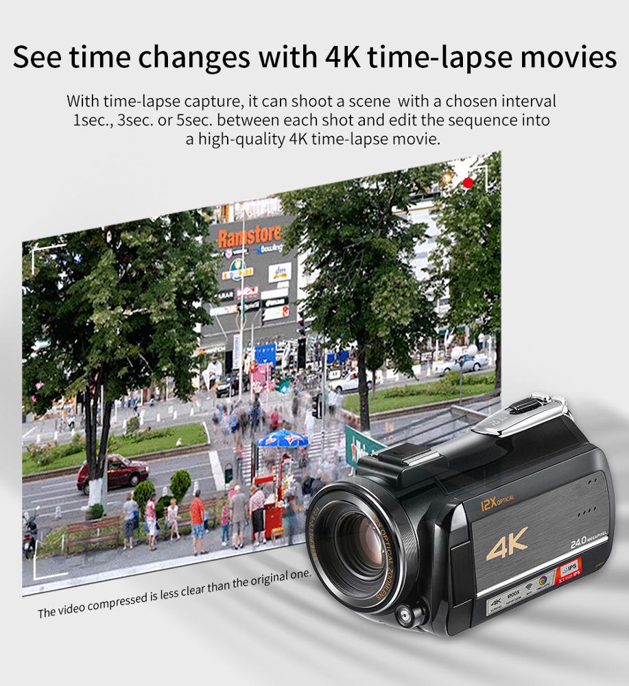 Winait professional 4k digital video camera with 3.0'' touch display/wifi/12x optical zoom/100x digital zoom /max support 128GB