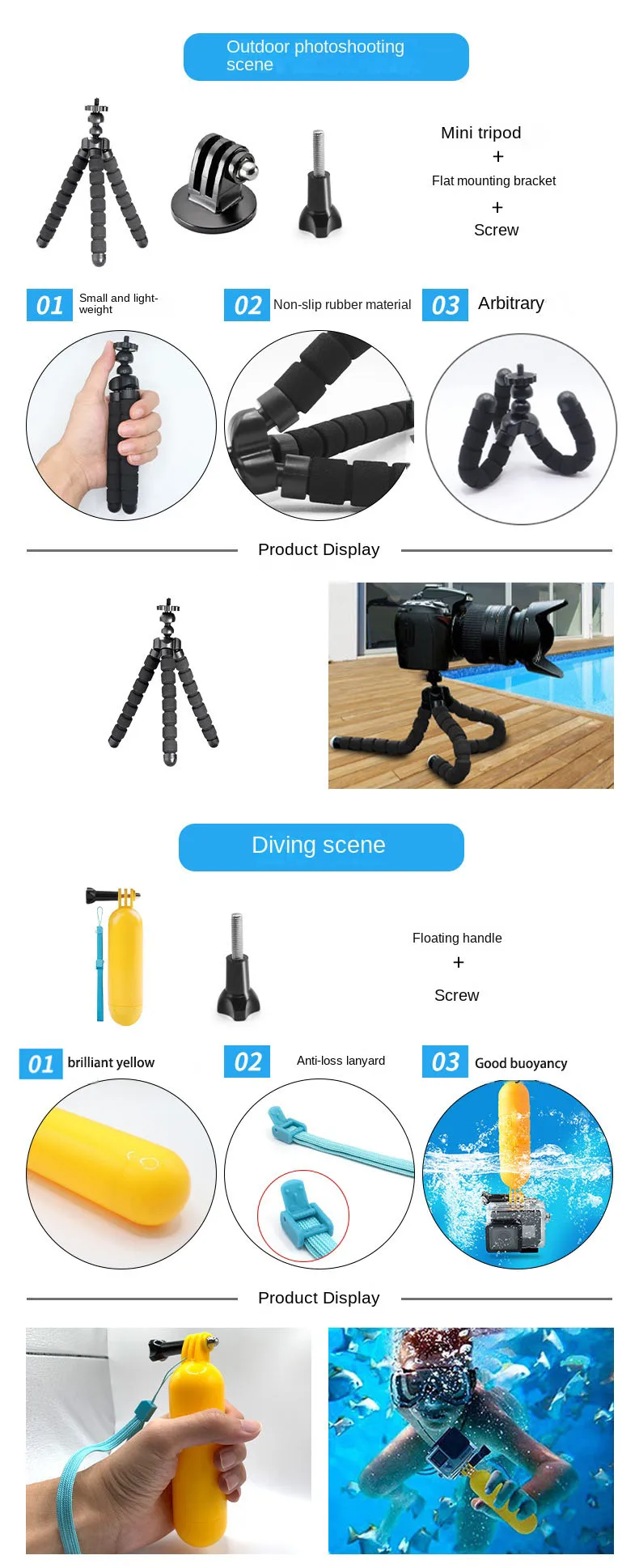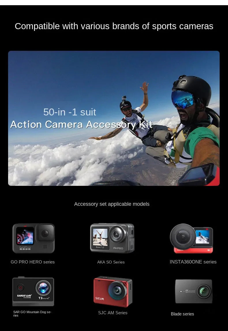 50-in-1 kits: Which is compatible with GoPro Hero 10 9 8 Max 7 6 5 4 Black GoPro 2018 Session Fusion Silver White Insta360 DJI AKASO APEMAN Campark SJCAM Action Camera etc.