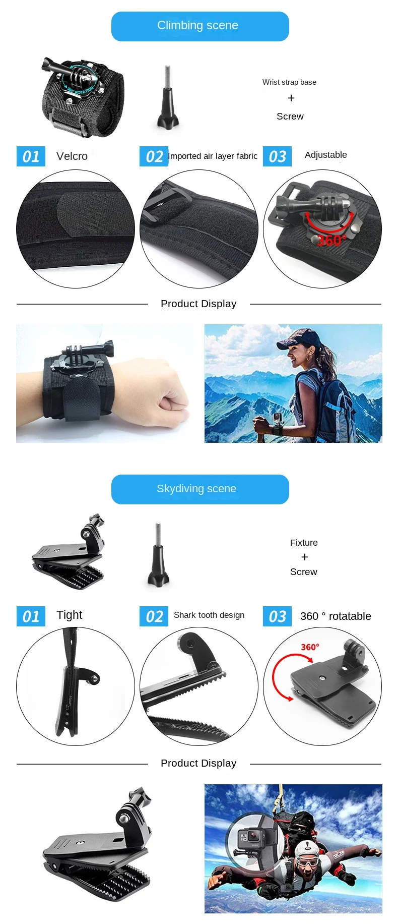 Head Strap Mount: Adjustable and compact design which meets your different requirements. It's lightweight, portable, easy to take.