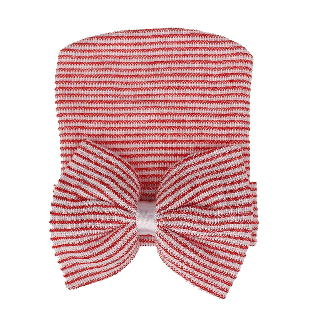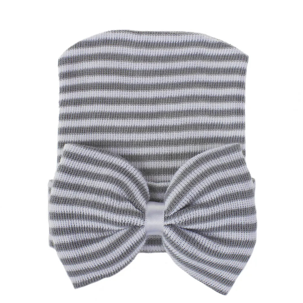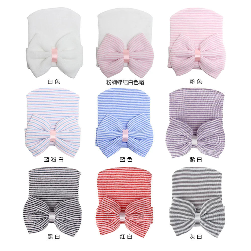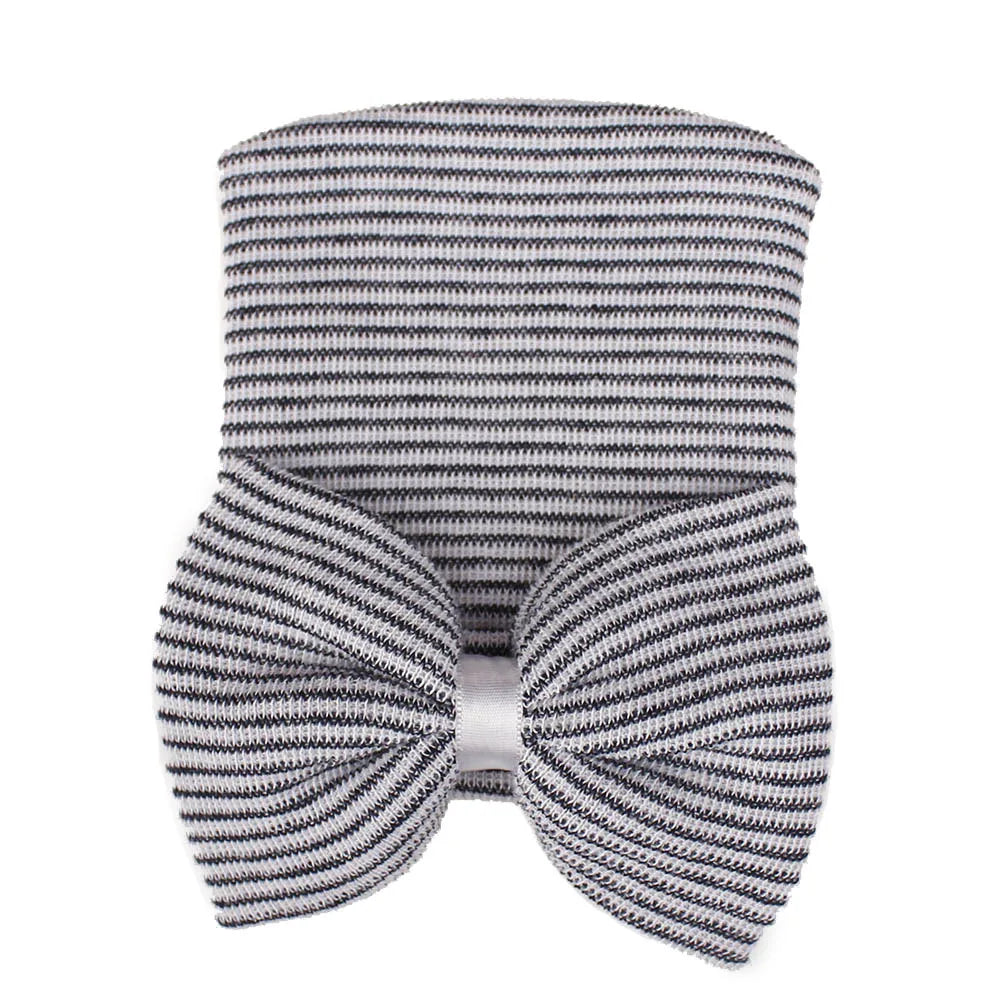 Newest Cute Newborn Baby Girl Comfy Bowknot Hospital Cap Beanie Hat Knitted Striped Baby Girl Caps Beanie Toddler Hats