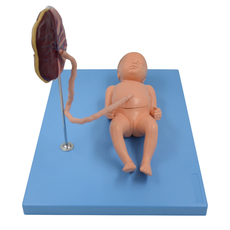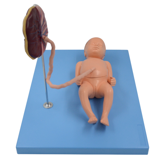 This model shows a term fetus with placenta, umbilical cord and internal organs.