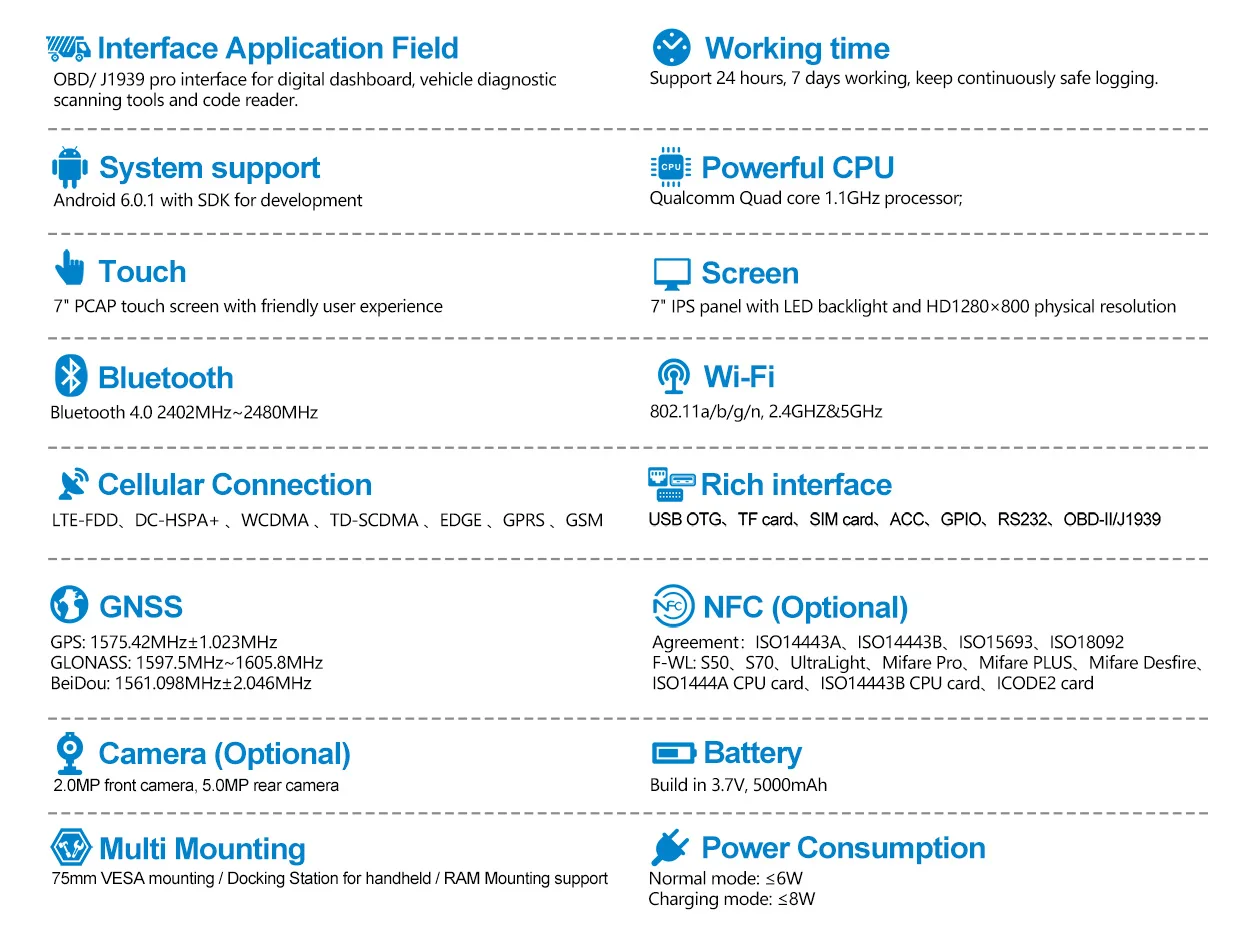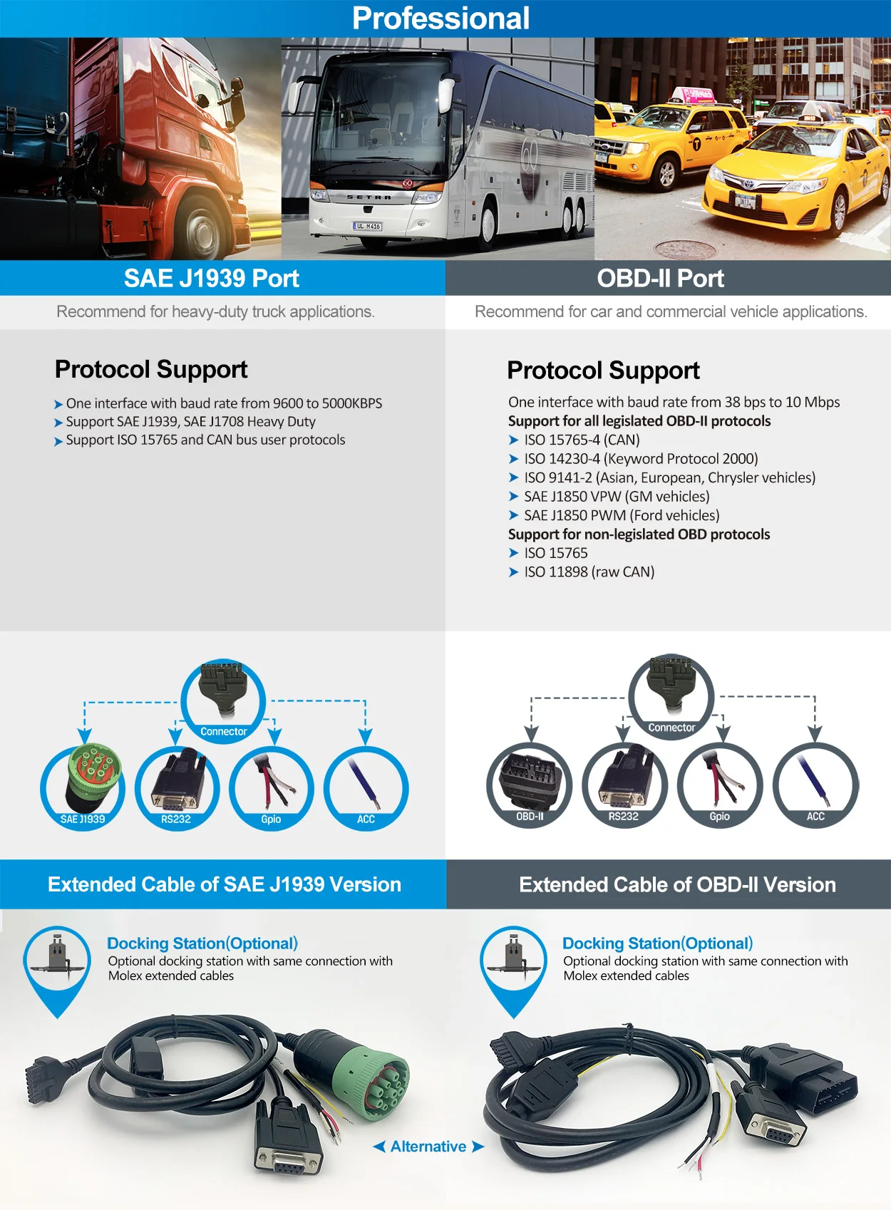 GPIO, 2G, 3G, 4G, Wifi, Bluetooth, GPS, ACC, Built-in 3.7V, 5000mAh Battery