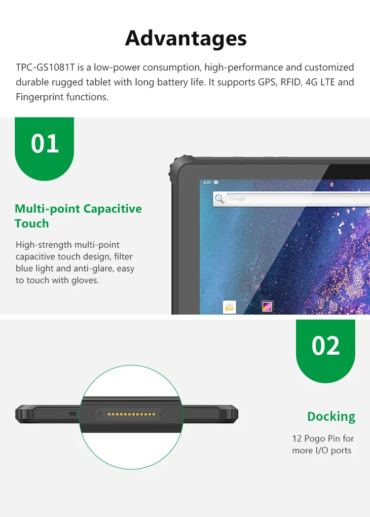 TPC-GS1081T, a 10 inch Android rugged Tablet PC IP67 that has a 10-inch display, CE certification, IP67 rating for dust and