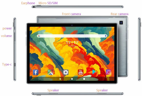 The 10 inch tablet adopts the 1280*800 IPS display, which presents a bright display with vivid colors for a more true-to-life viewing experience from all angles. The 10 inch tablet comes with dual speakers, which produce robust Audio for your favorite music, games and videos.it's so mobile you could take it everywhere.