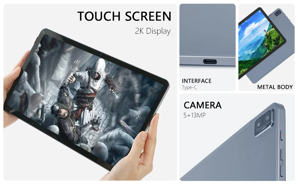 The tablet is equipped with 5MP+13MP front and rear high-definition dual cameras.